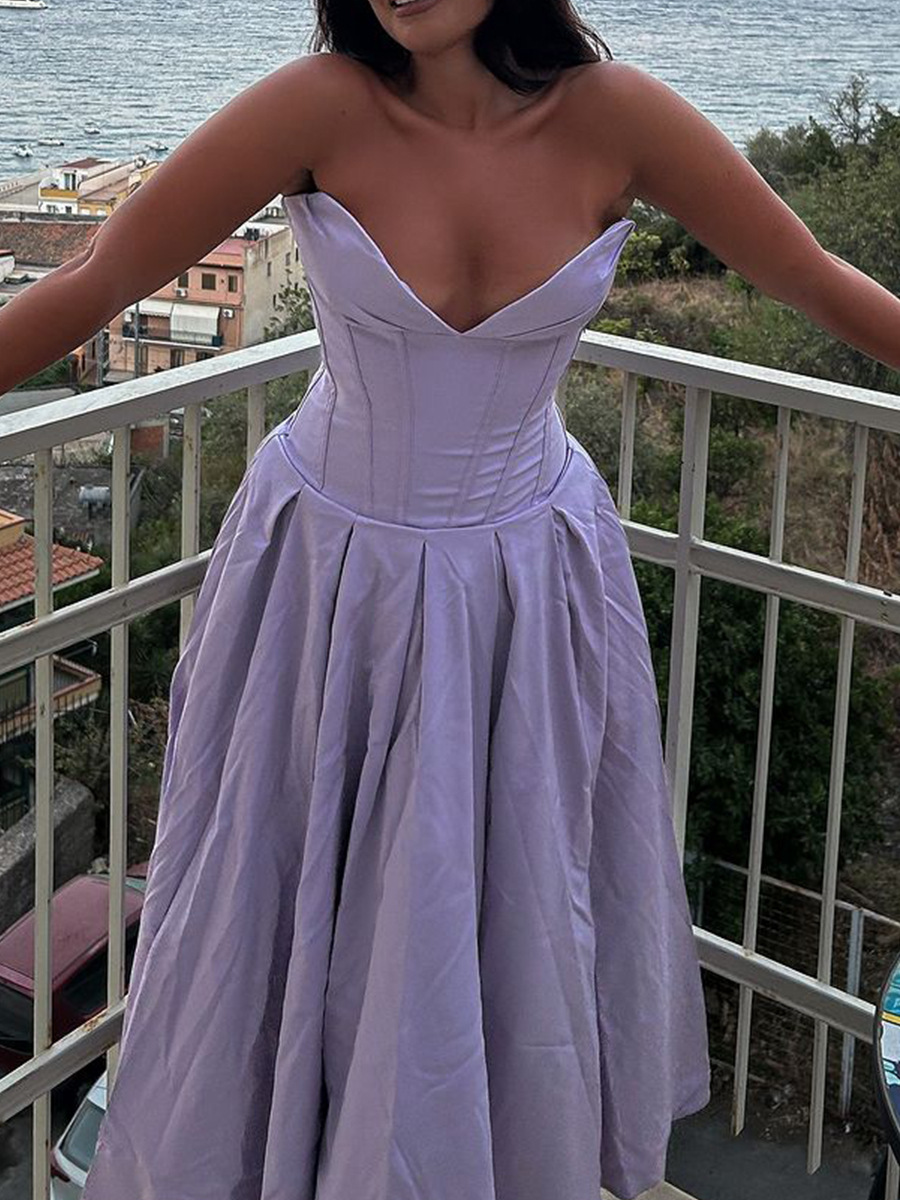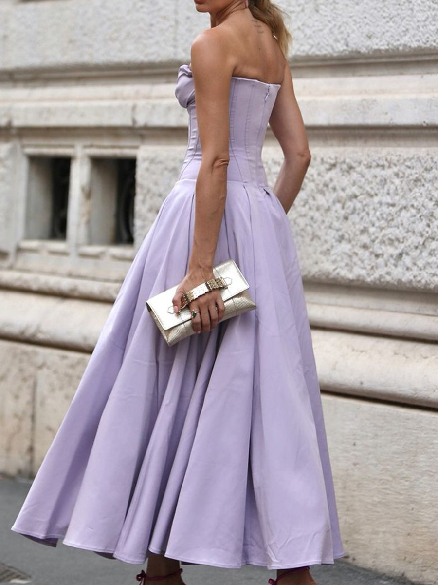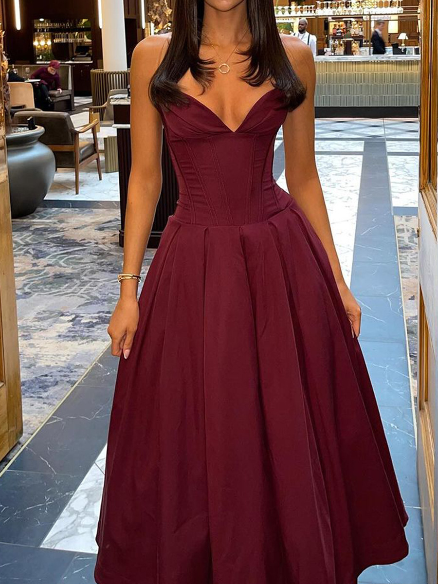 Brownm Women's Clothing New Dress Sexy Chest Bare Back Fish Bone Girded Sleeveless Dress Women's Dress High Sense