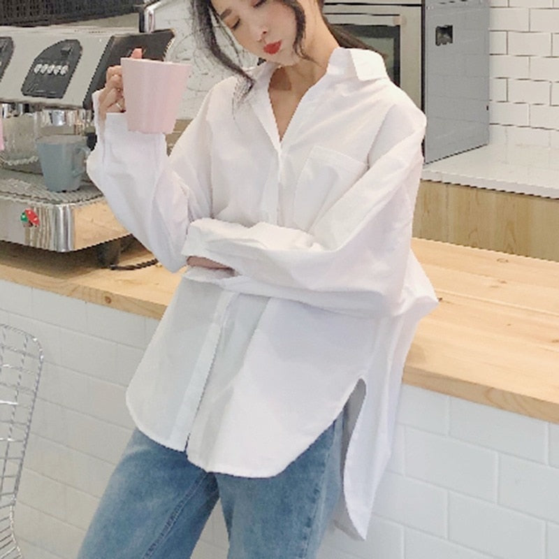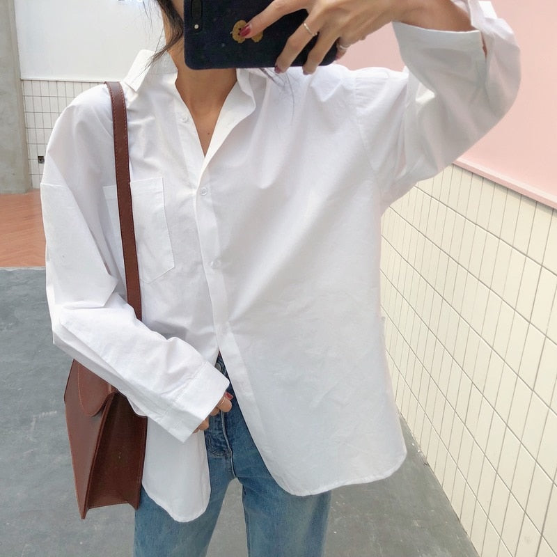 Casual Solid Loose Women Shirt Spring Elegant Clothes Autumn New Cotton White Blouse Women Vintage Long Sleeve Tops Blusas 11456