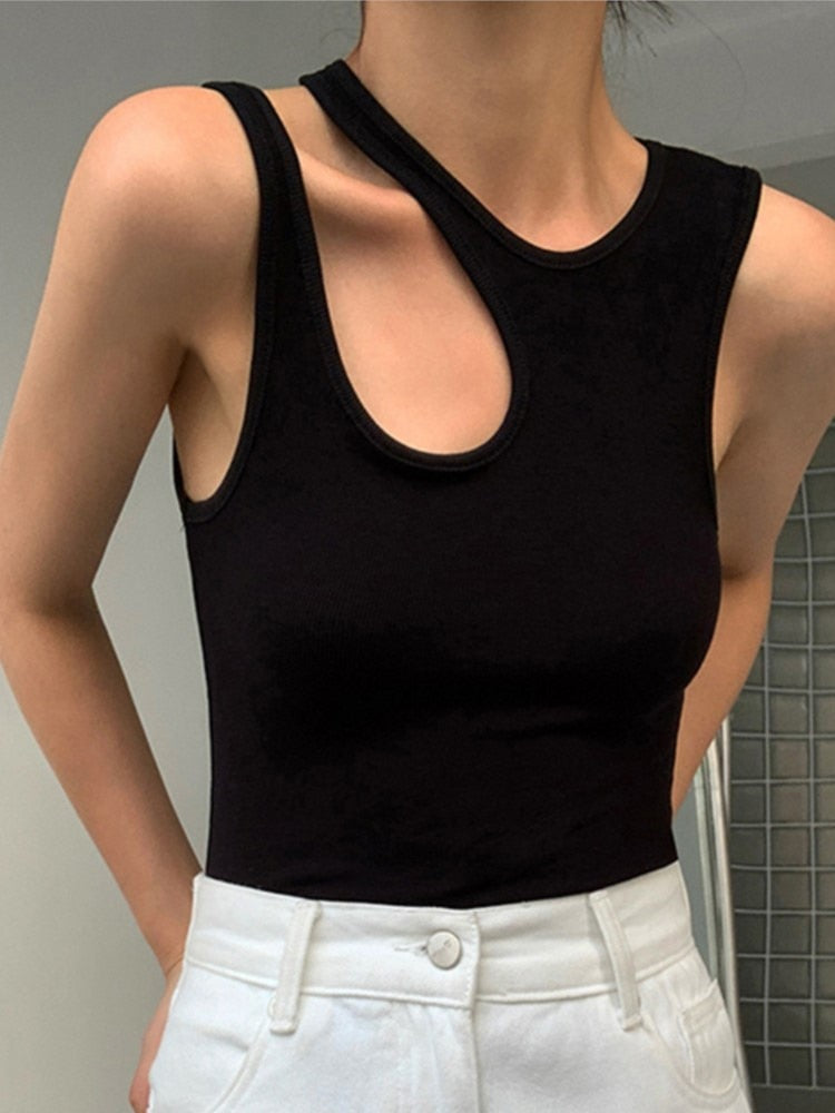 Casual y2k White Cut Out Women's T Shirt Sleeveless Slim T Shirts Female Clothing 2022 Summer Fashion crop top women camisetas