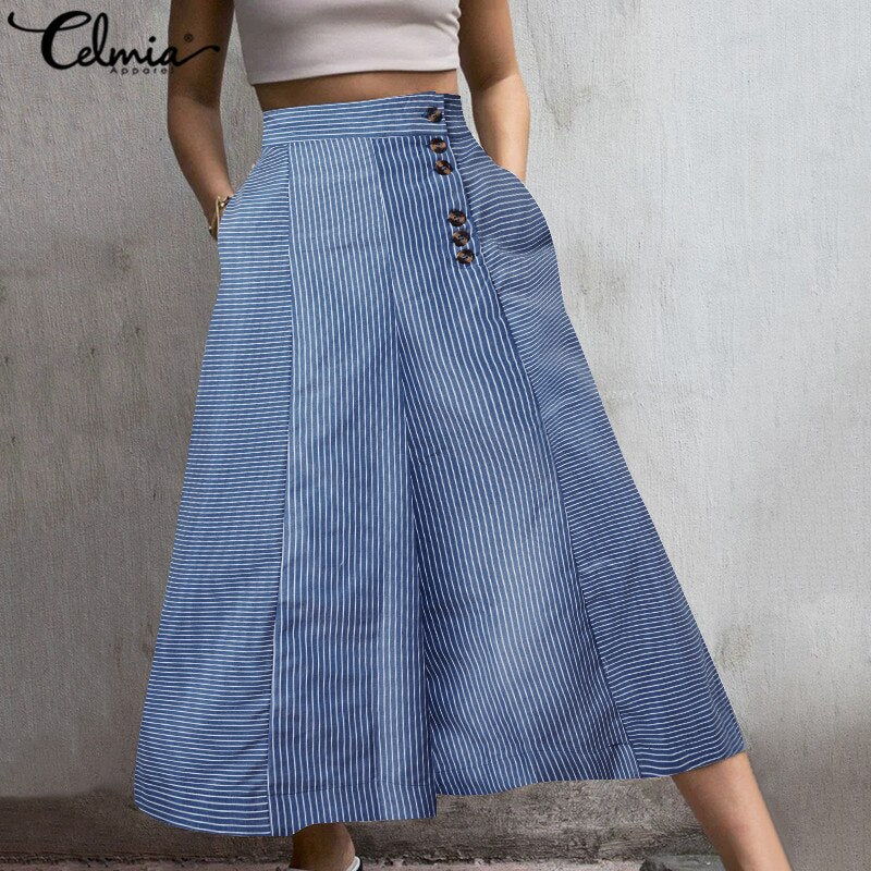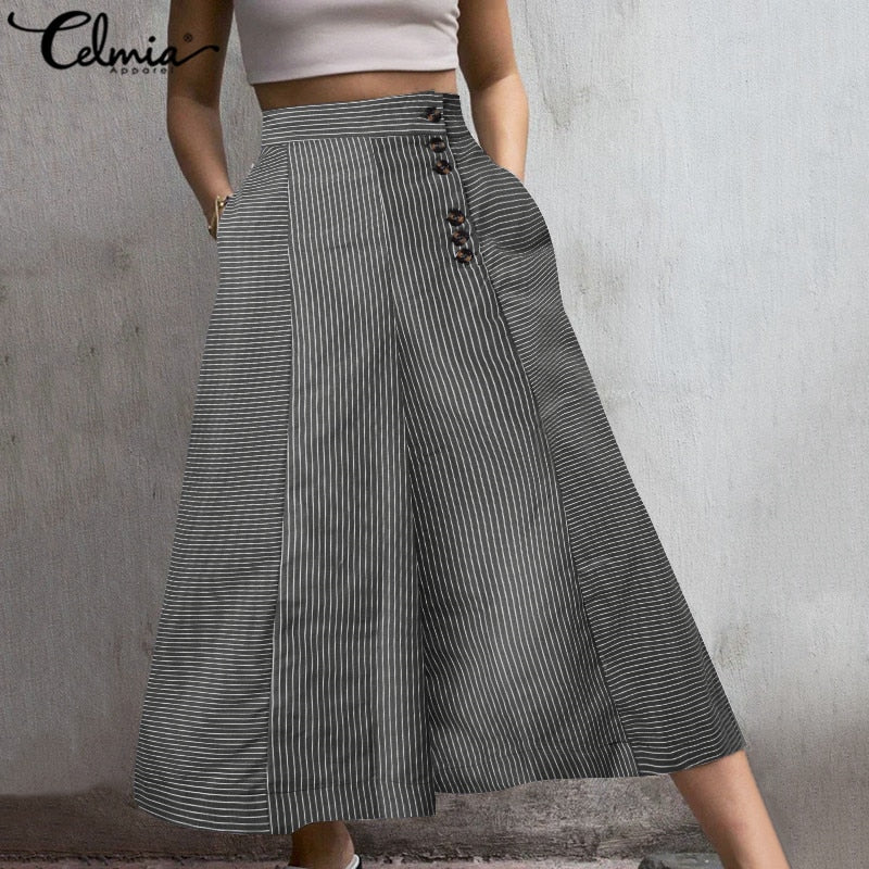 Celmia 2022 Fashion Striped Trousers Women White Wide Leg Pants Summer High Waist Pocket Casual Office Pantalon Elegant Palazzo
