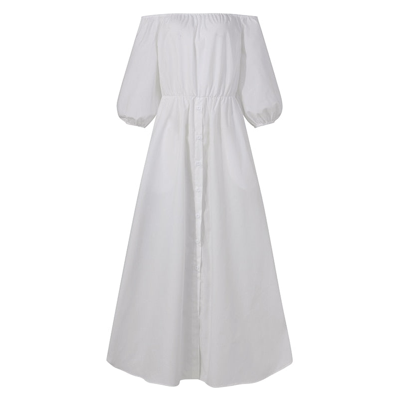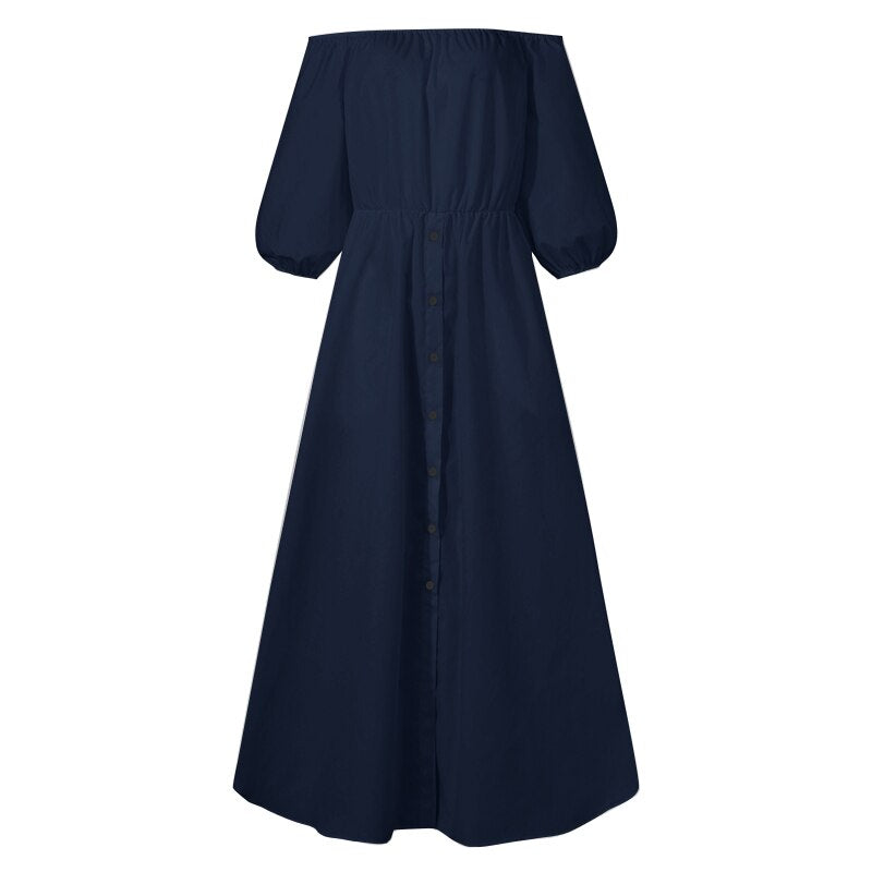 Celmia 2022 Summer High Split Sexy Dress Women Casual Off Shoulder Long Dress Loose Solid High Waist Buttons Party Sundress Robe