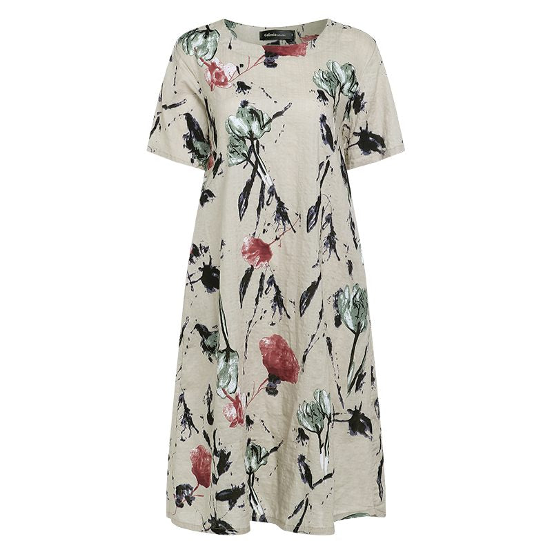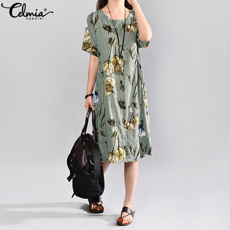 Celmia Bohemian Long Dress 2022 Summer Vintage Women Short Sleeve Floral Print Midi Sundress Loose Casual Party Beach Vestidos