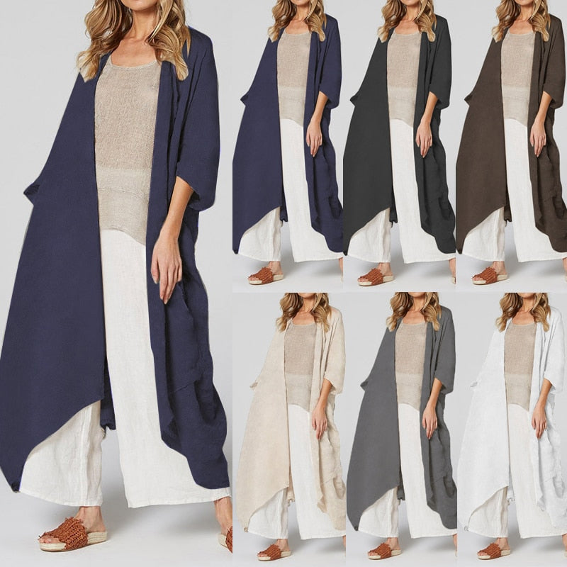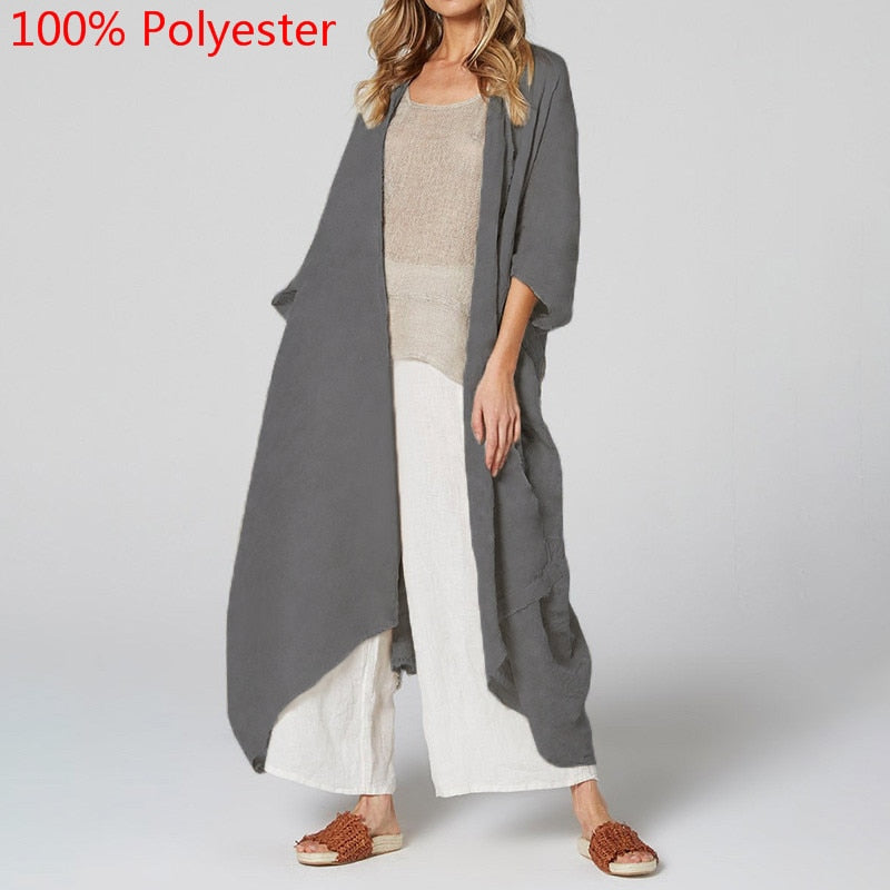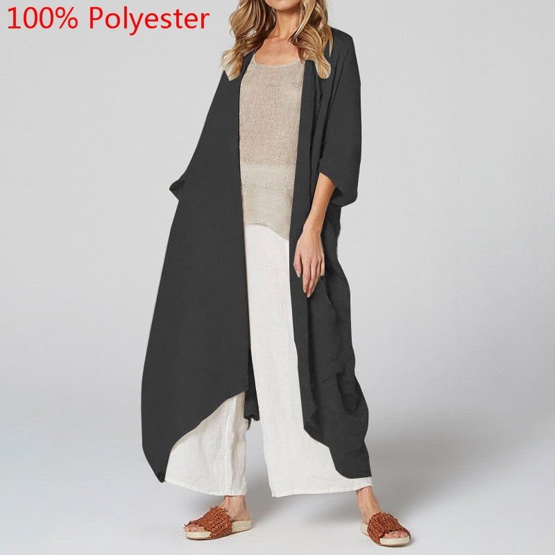 Celmia Women Vintage Kimono 2022 Autumn Long Shirts Cardigan Blouse Belted Casual Beach Cover Up Blusas Femininas Oversized Tops