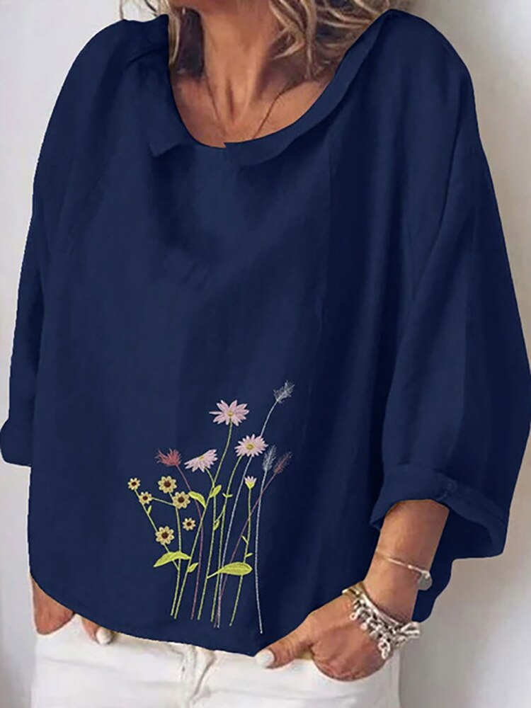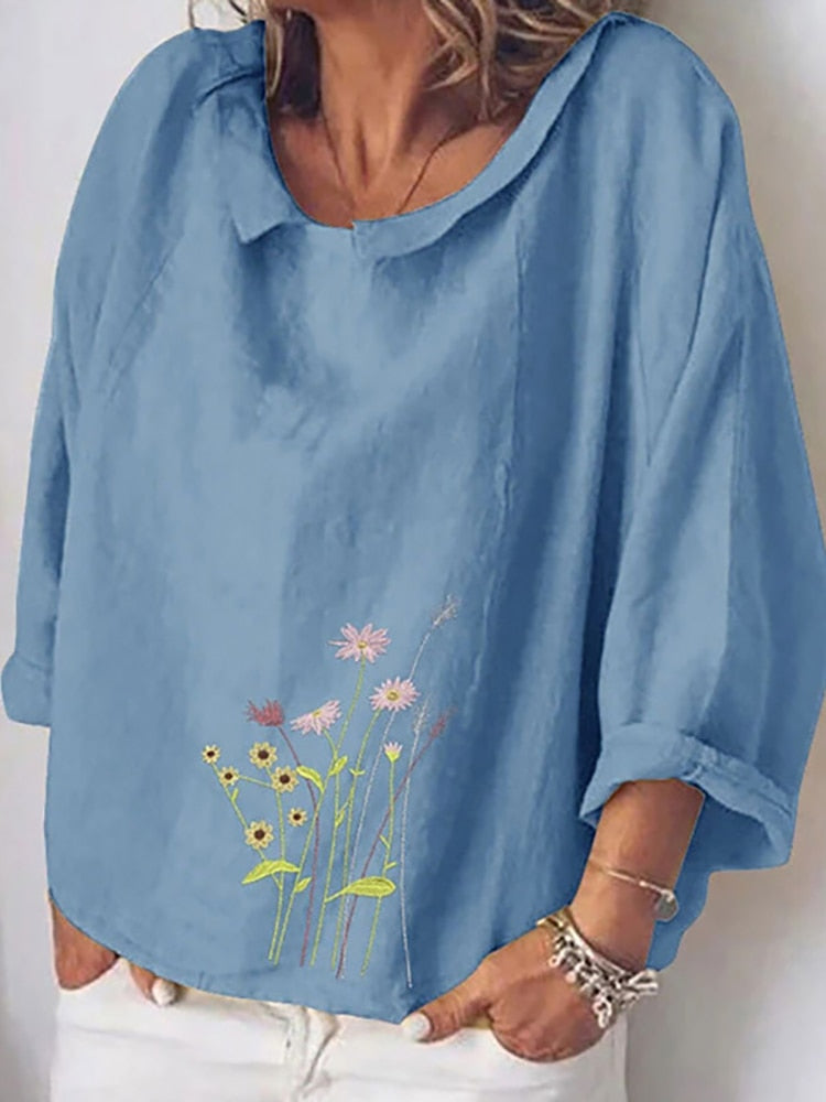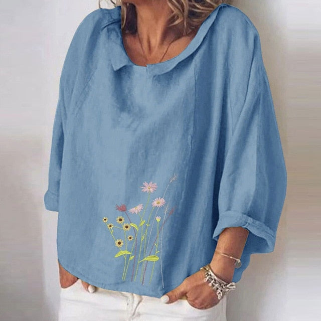 Cotton Linen Women Blouses Summer Long Sleeve Florals Animal Print Blouse Shirts Turn-down Collar Loose Female Blusa Tosp 5XL