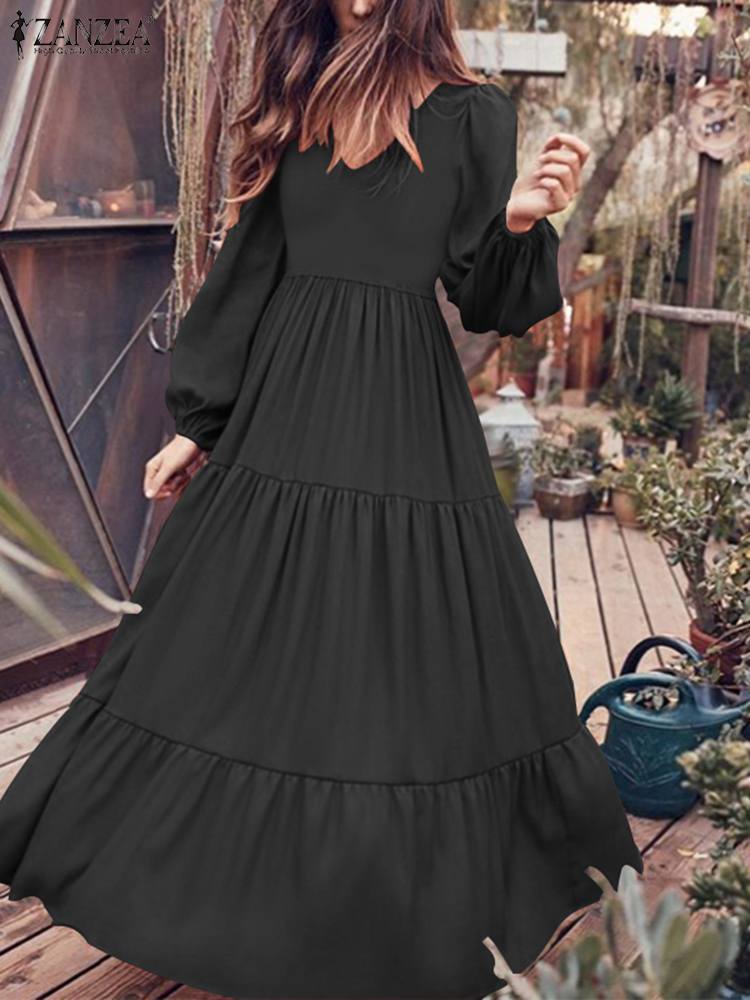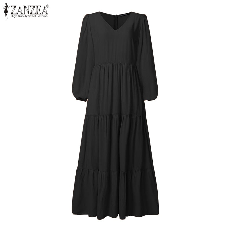 Elegant Dresses for Women Bohemian Ruffle Maxi Vestido 2022 Puff Sleeve Dating Sundress Oversize Casual Solid Sexy V Neck Robe 1