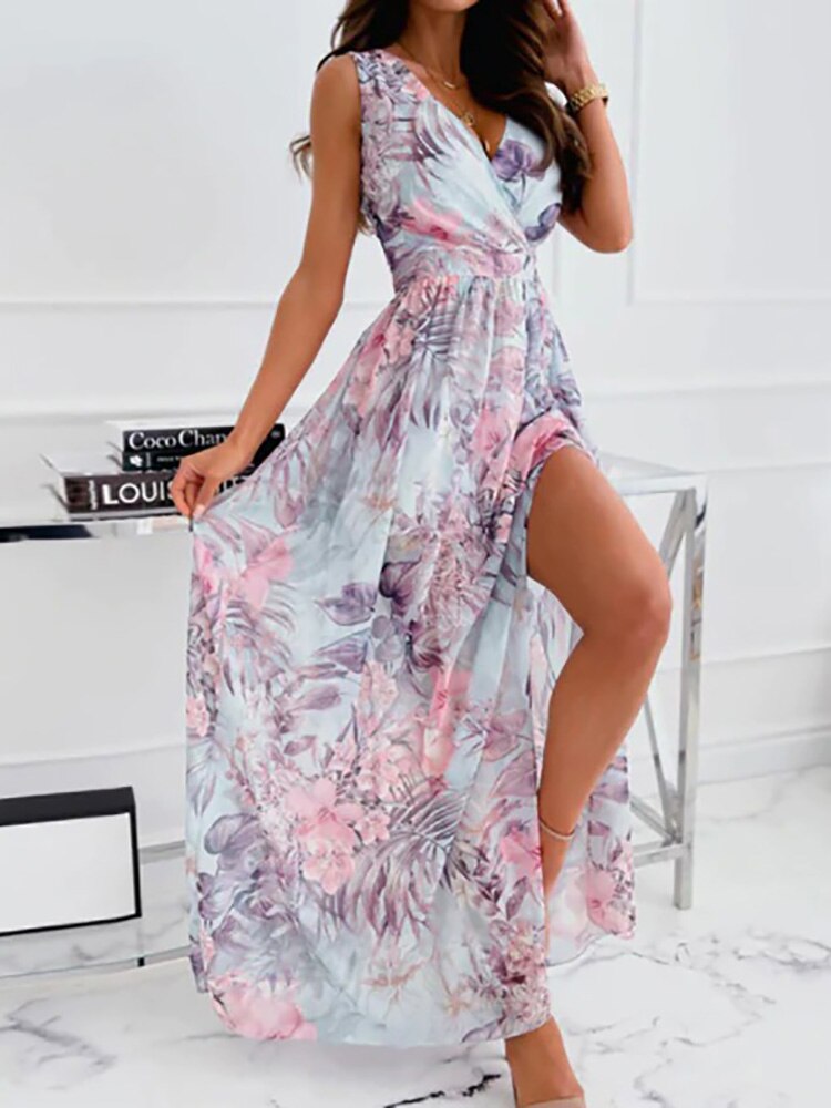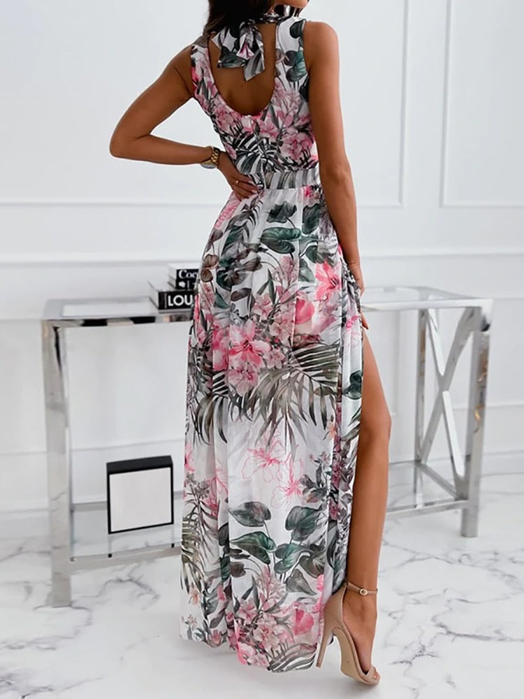 Elegant Long Dresses For Women Party Female Sexy V Neck Retro Print Maxi Dress Spring Summer Sleeveless Streetwear Loose Dresses