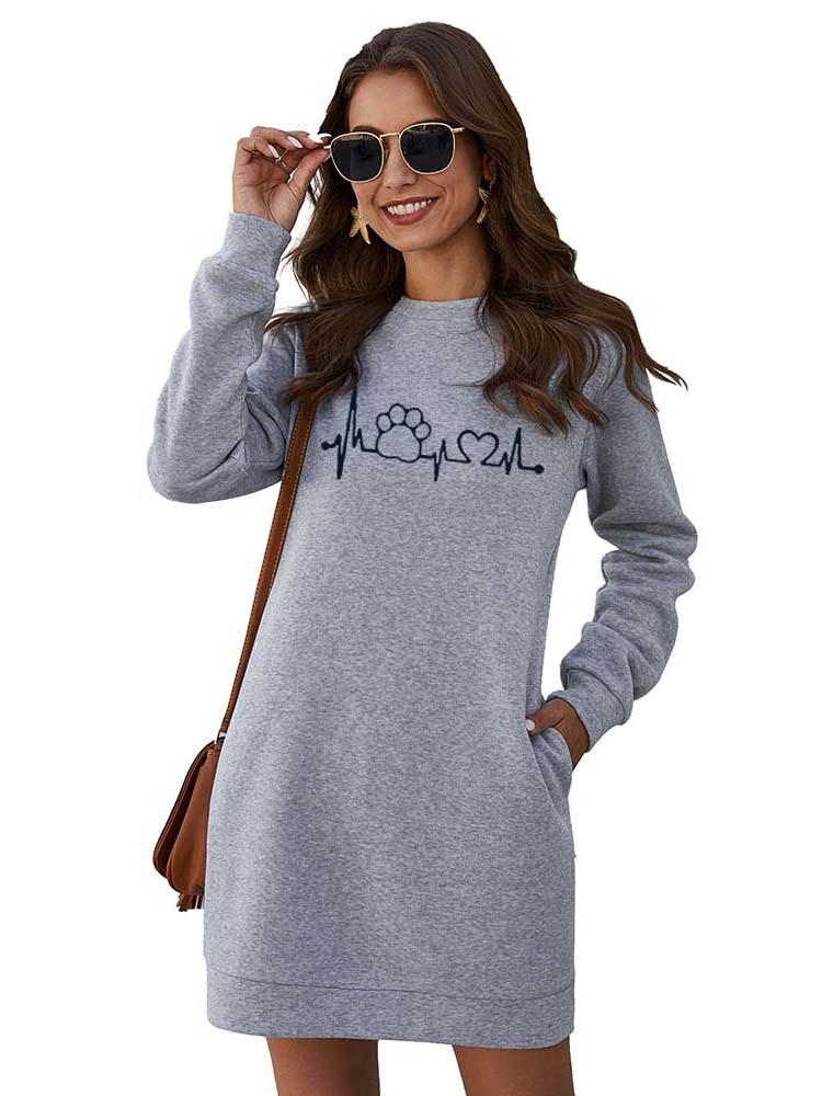 Embroidery Sweatshirt Dress Women Autumn Winter Long Sleeve Fashion Pocket Elegant Ladies Plus Size Casua Mini Dresses Vestidos