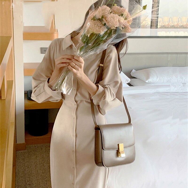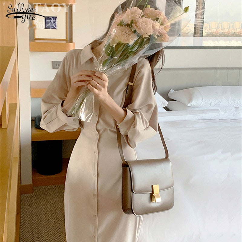 Fashion Long Sleeve Shirt Dress Women Spring Vintage Midi Jacket Dress Female Casual Loose Party Robe Maxi Bandage Vestido 18102