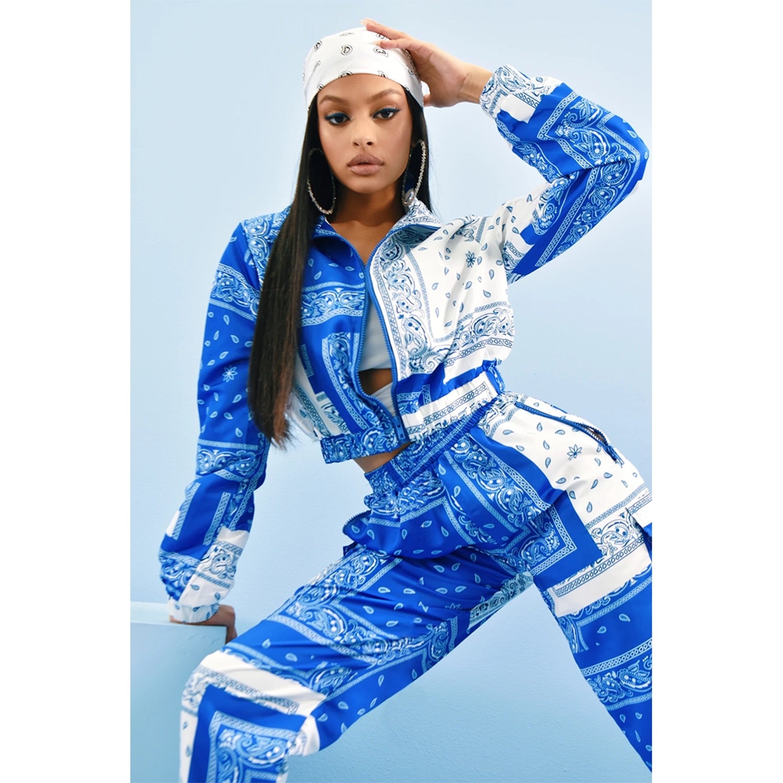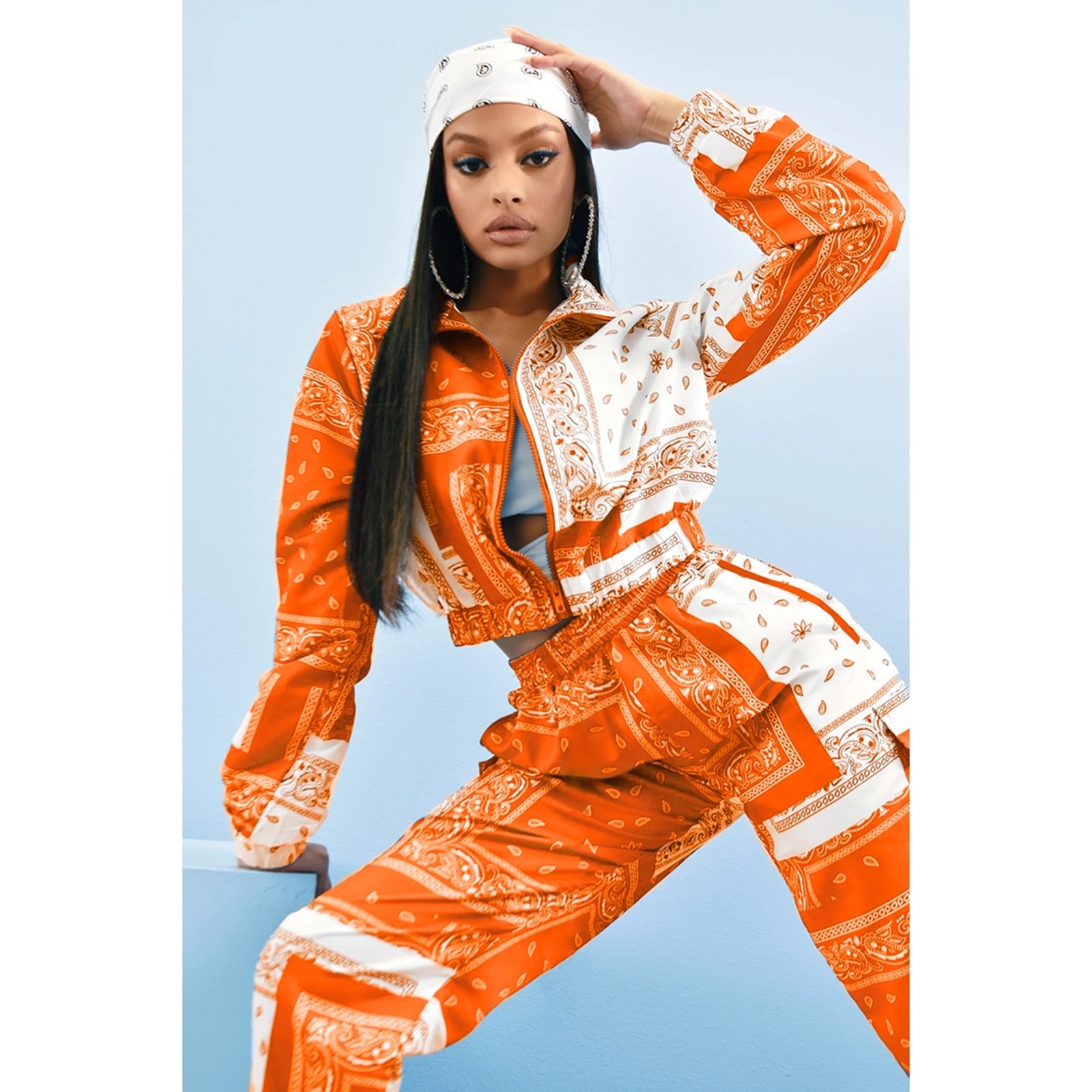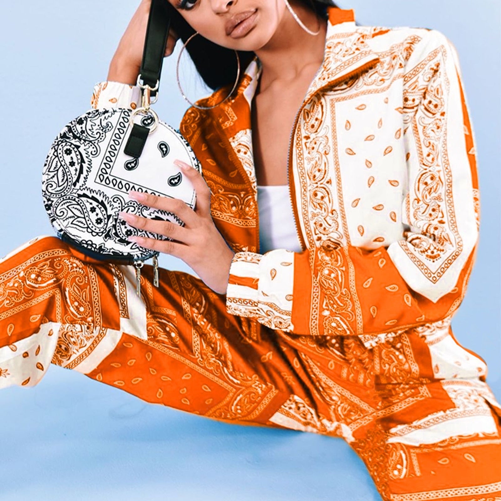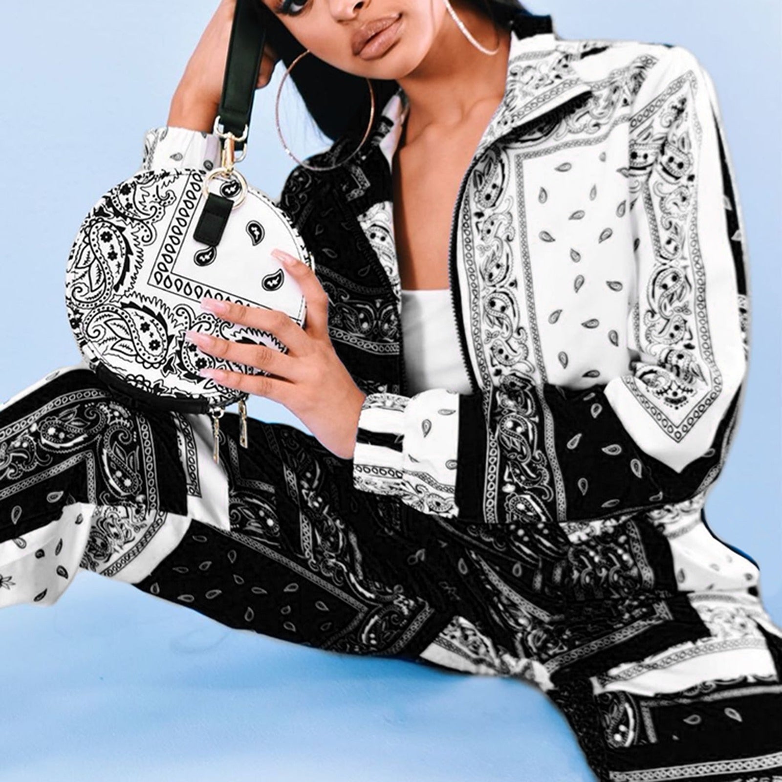 Fashion Printed Two-piece Clothes Set Women Streetwear Zipper Long Sleeve Short Coats+Joggers Sweatpants Autumn Spring Outfits