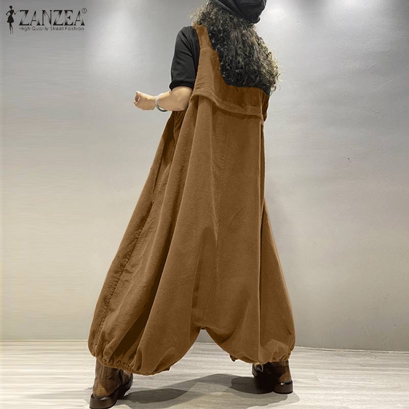 Fashion Suspenders ZANZEA Women Autumn Wide Leg Rompers Casual Corduroy Jumpsuits Loose Playsuits Solid Drop-Crotch Overalls