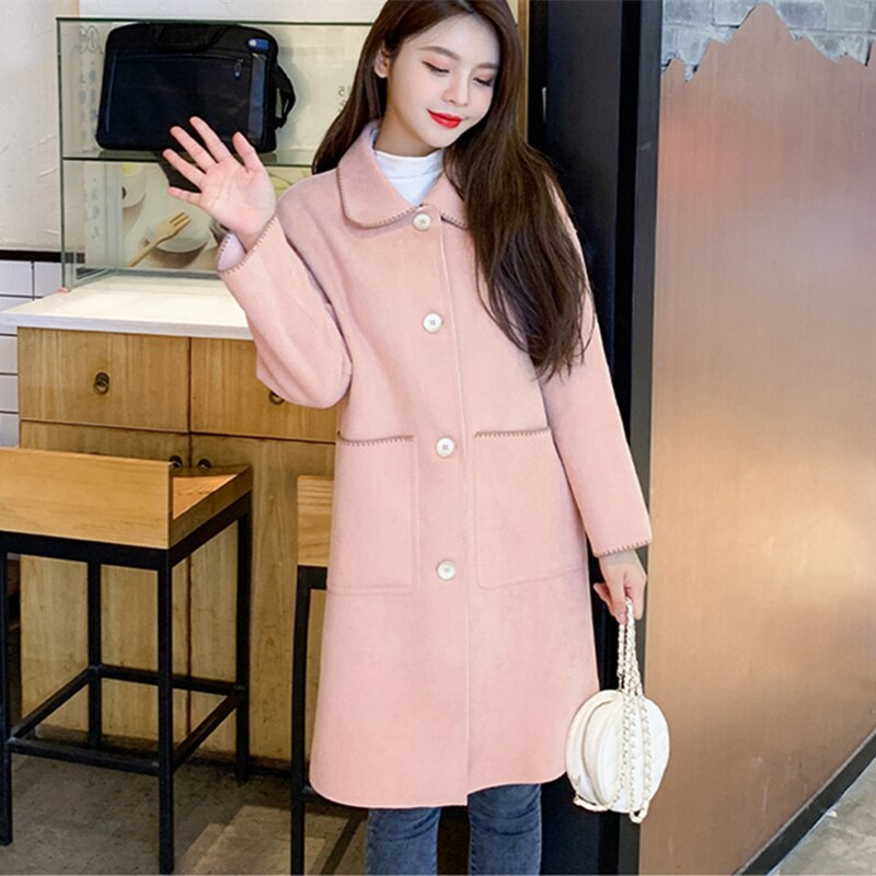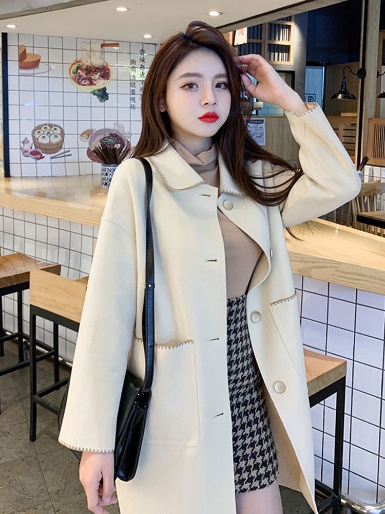 Fashion Women Casual Thin Coat Spring Autumn Elegant Fashion Long Sleeve Lapel Neck Woolen Trench Coat