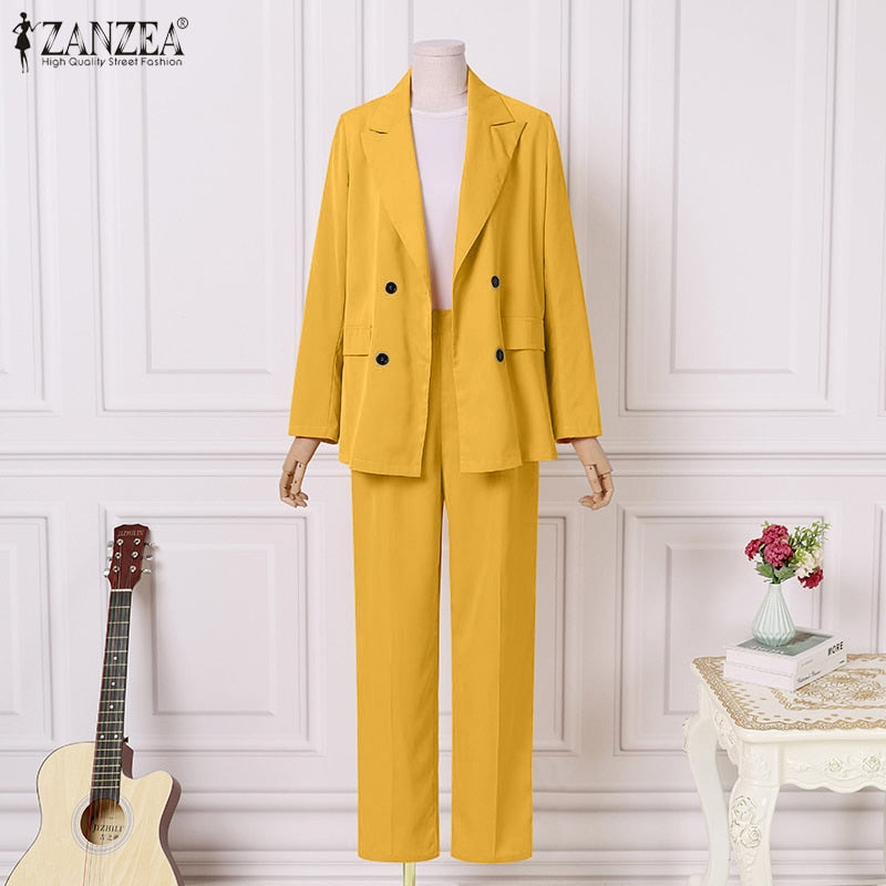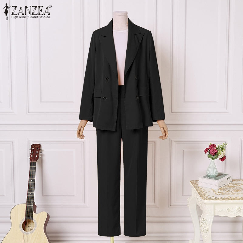 Fashion Women's Business Sets 2022 Summer OL Long Sleeve Shirts and High Waist Pants ZANZEA Casual Solid Oversized Sreetwear