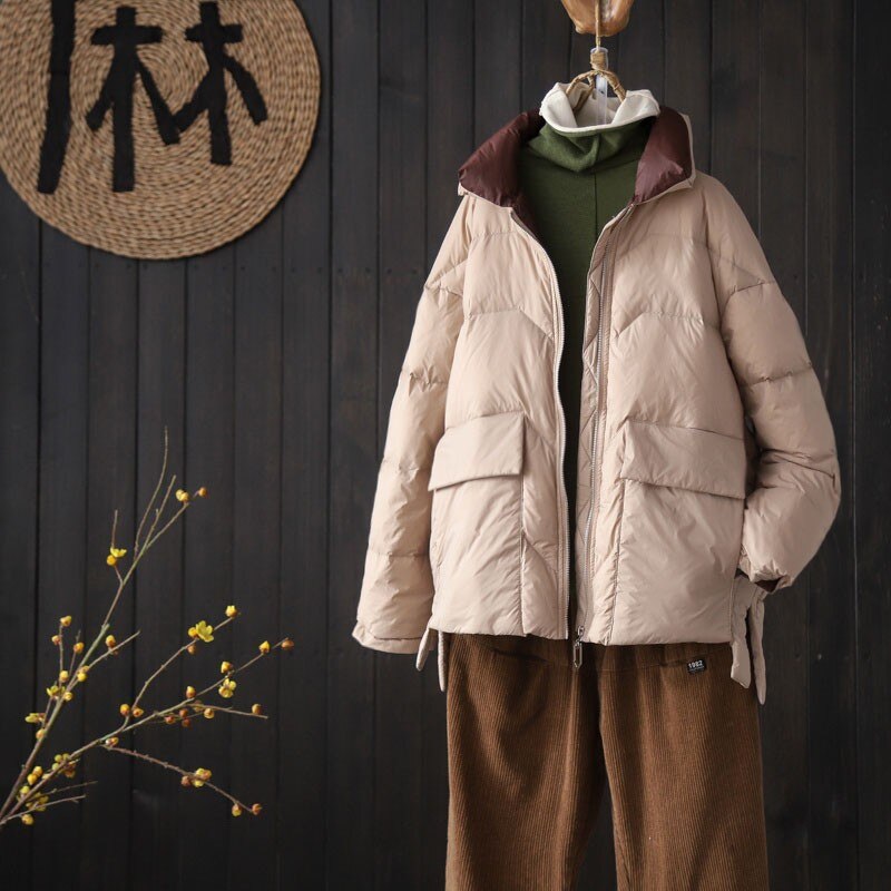 Fitaylor Autumn Winter Women Stand Collar Short Down Coat 90% White Duck Down Ultra Light Parkas Loose Zipper Windproof Outwear