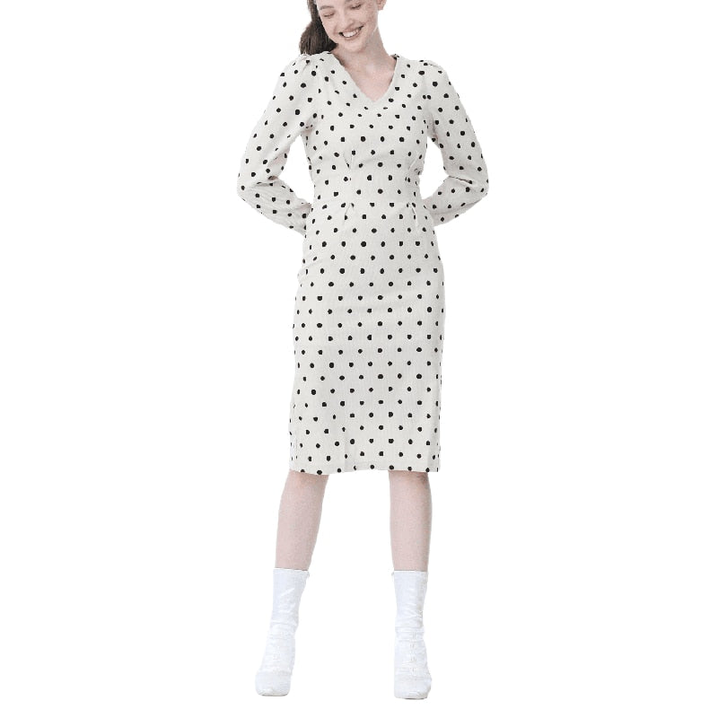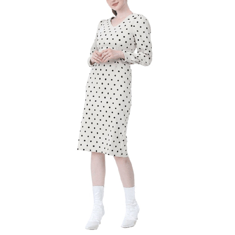 French Style Spring Autumn Women Casual Polka Dot Print A-Line Party Corduroy Dresses Eleagnt Lace-Up Slim  Fashion Vestdios