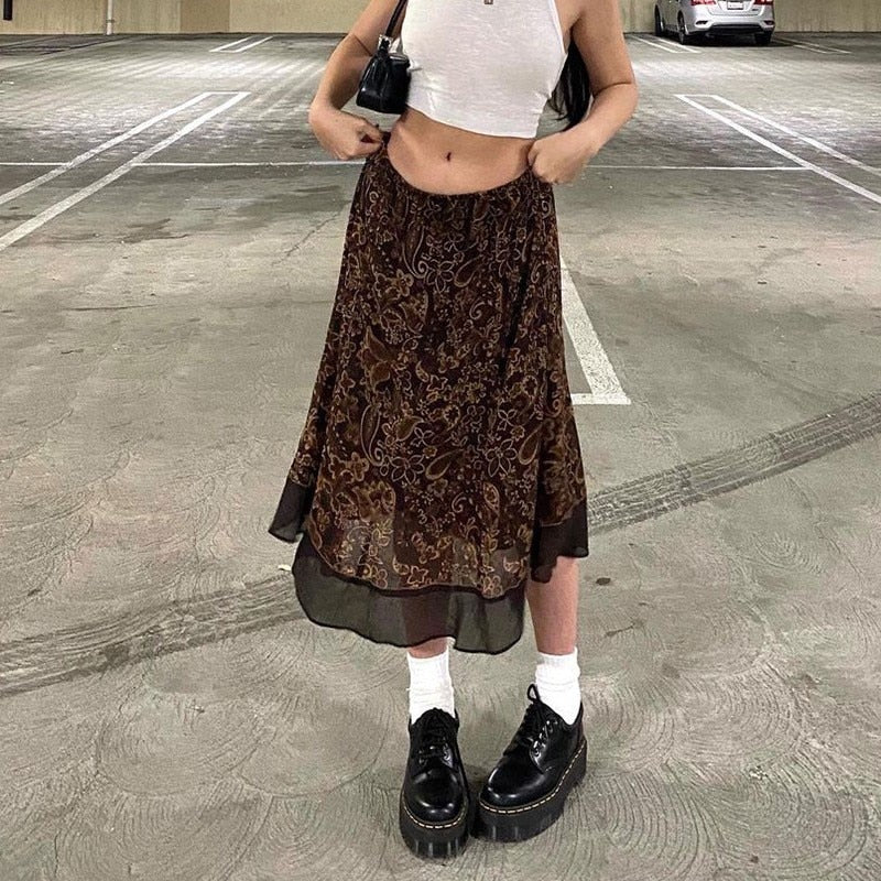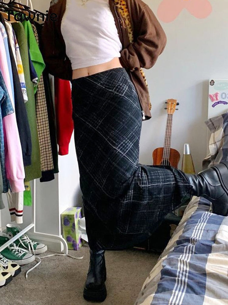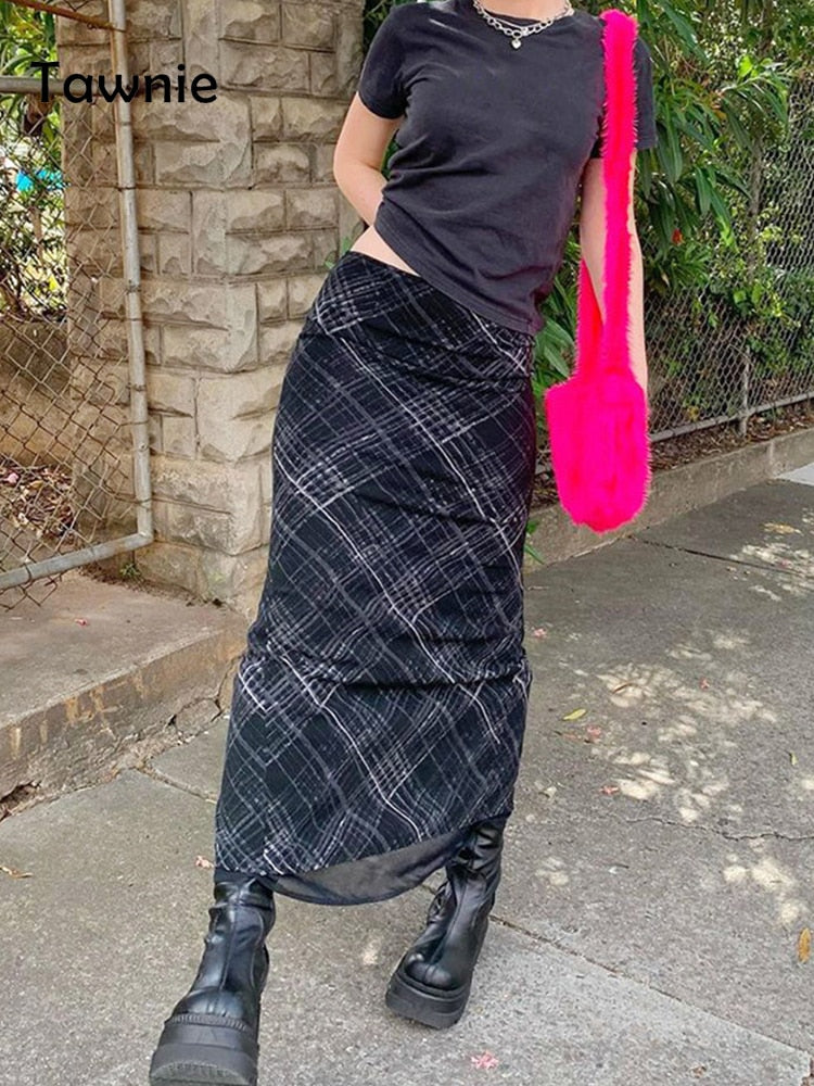 Gitana 2022 Spring Summer Fairy Grunge Long Tulle Skirts Women Kawaii Plaid Black Skirt Harajuku Low waisted Skirt Korean