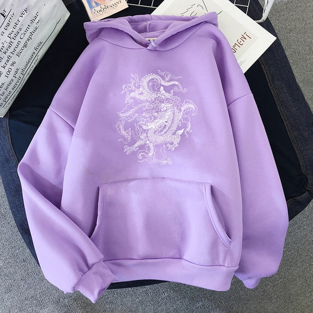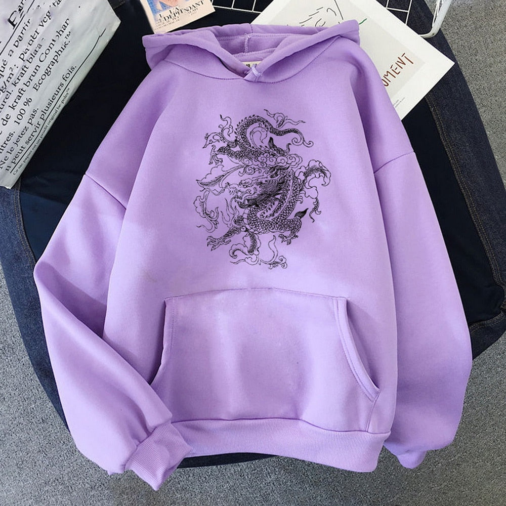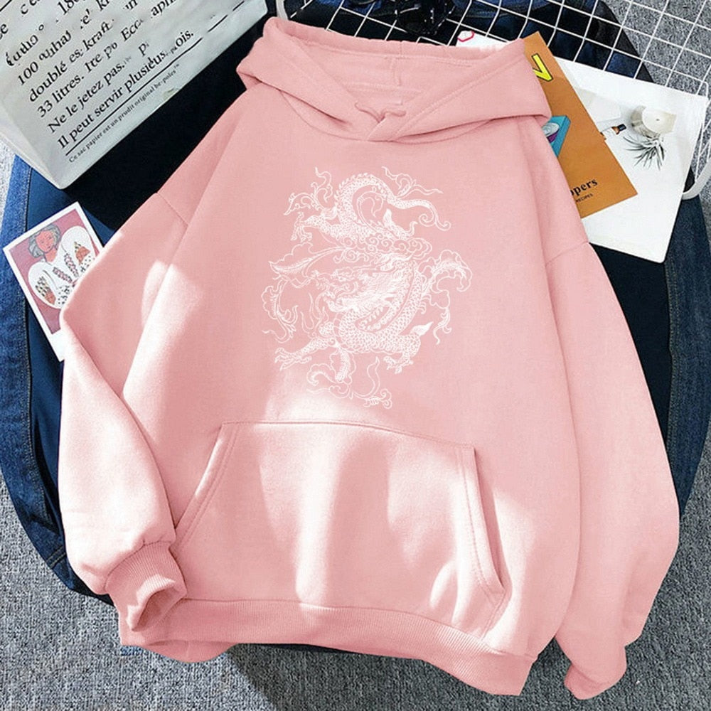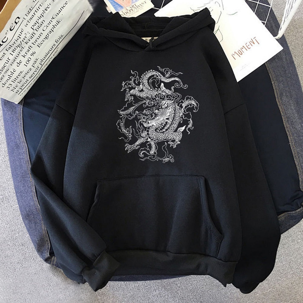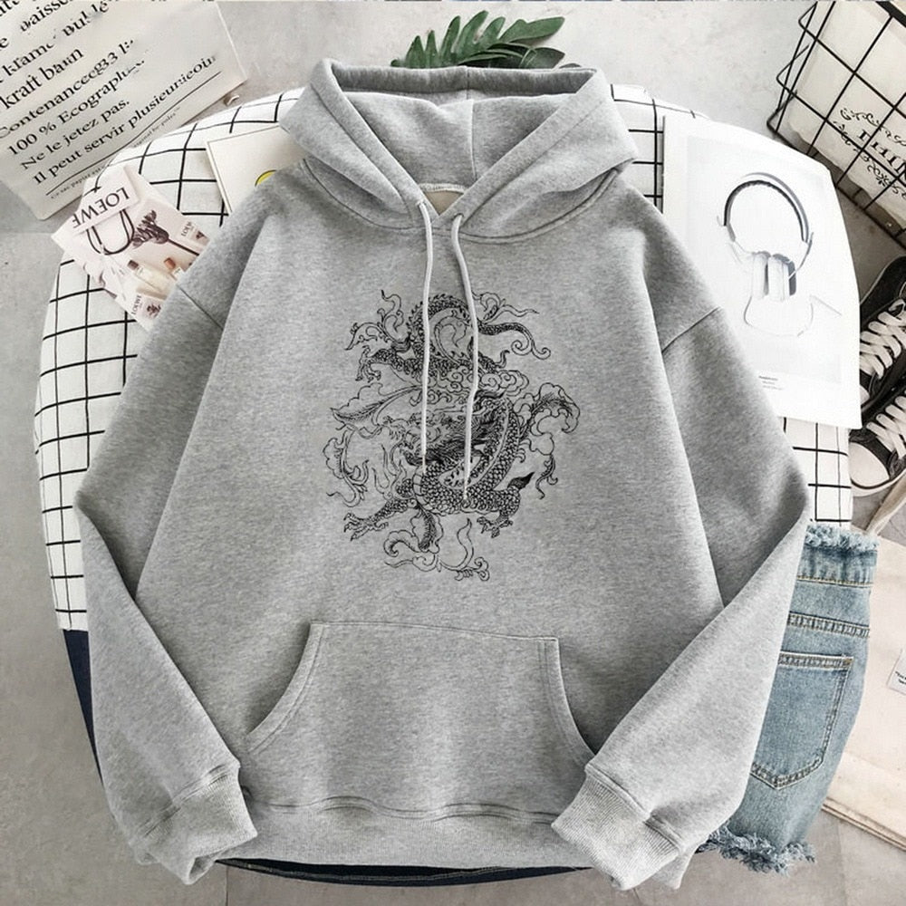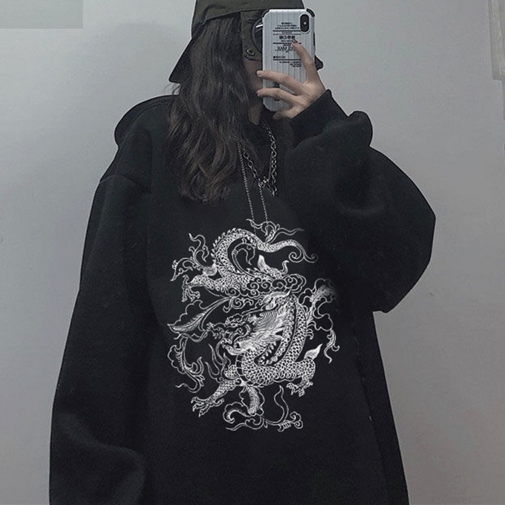 Gothic Dragon Print Hoodies Women Harajuku Vintage Hoodie Sweatshirt Oversized Streetwear Y2k Casual Winter Autumn Grunge Coat