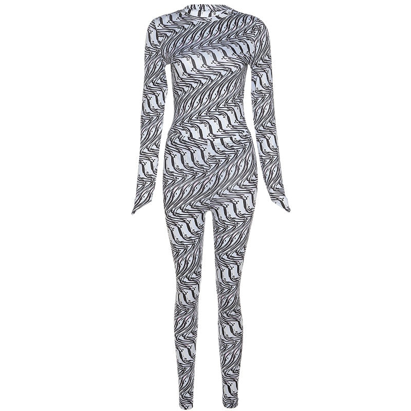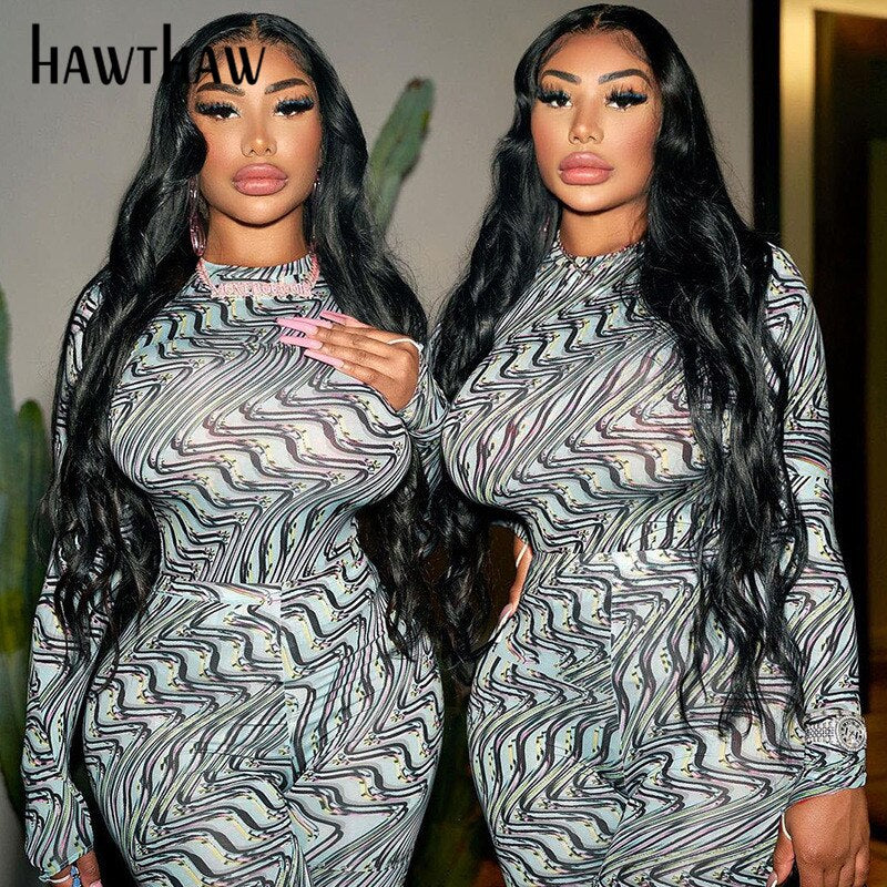 Hawthaw Women Autumn Long Sleeve Tops Long Pants Bodycon Printed Two Piece Set Suit Outfit 2021 Fall Clothes Wholesale Items