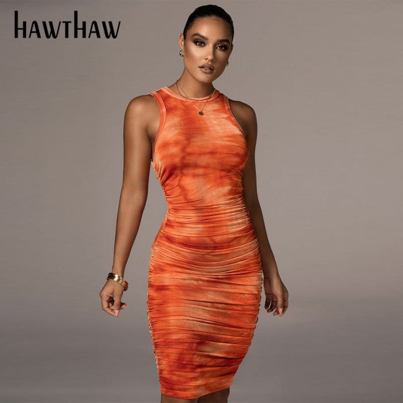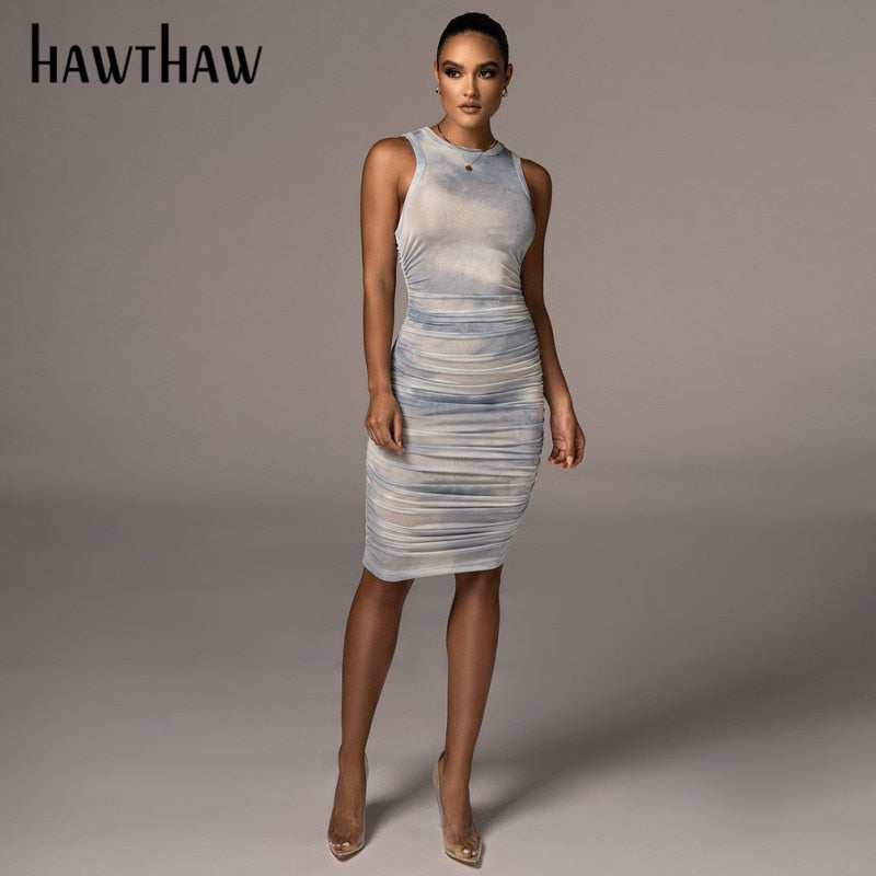 Hawthaw Women Autumn Summer Sleeveless Printed Bodycon Slim Package Hip Dress 2021 Female Clothing Streetwear Wholesale Items