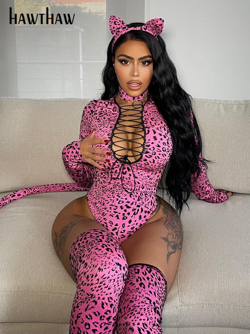 Hawthaw Women Autumn Winter Long Sleeve Sexy Printed Bodycon Pink Tops Bodysuit 2021 Fall Clothes Wholesale Items Streetwear
