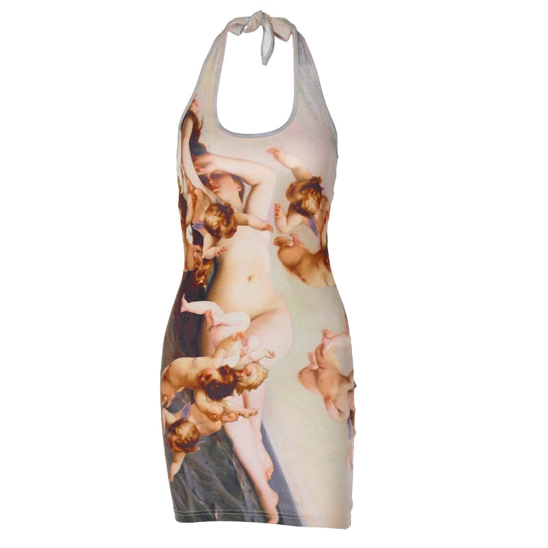 Hawthaw Women Summer Halter V Neck Sleeveless Printed Bodycon Party Mini Dress 2021 Female Clothing Streetwear Wholesale Items