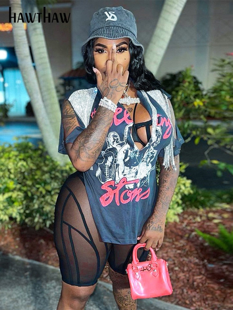 Hawthaw Women V Neck Letter Print Short Sleeve Graphic T Shirt Tops Tees Blouse 2022 Summer Clothes Wholesale Items Streetwear