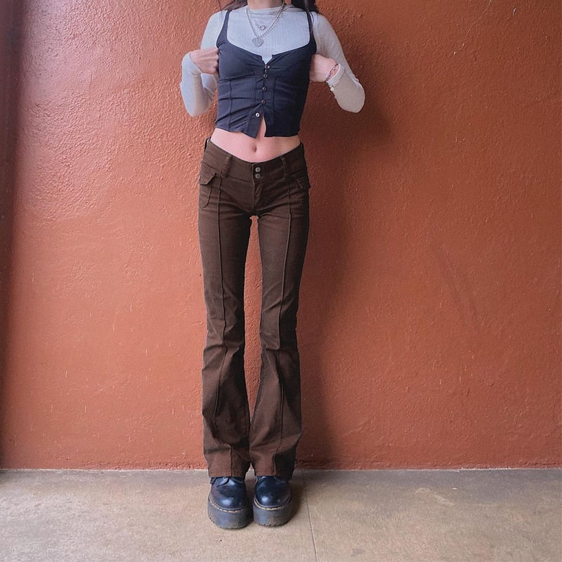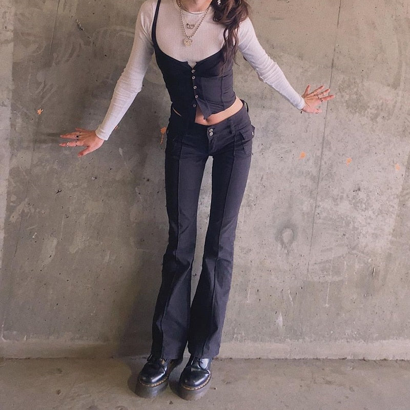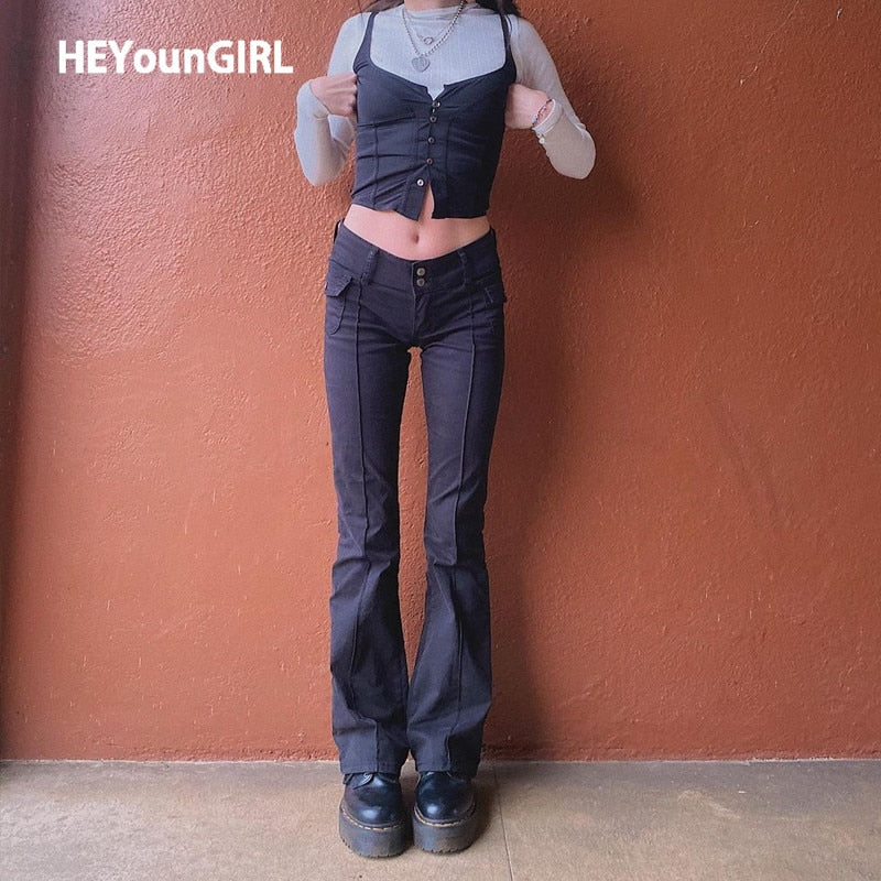 HEYounGIRL Black Vintage Skinny Long Trousers Women Casual Low Waist Pants Capris Fashion Pocket Sweatpants Streetwear 2021