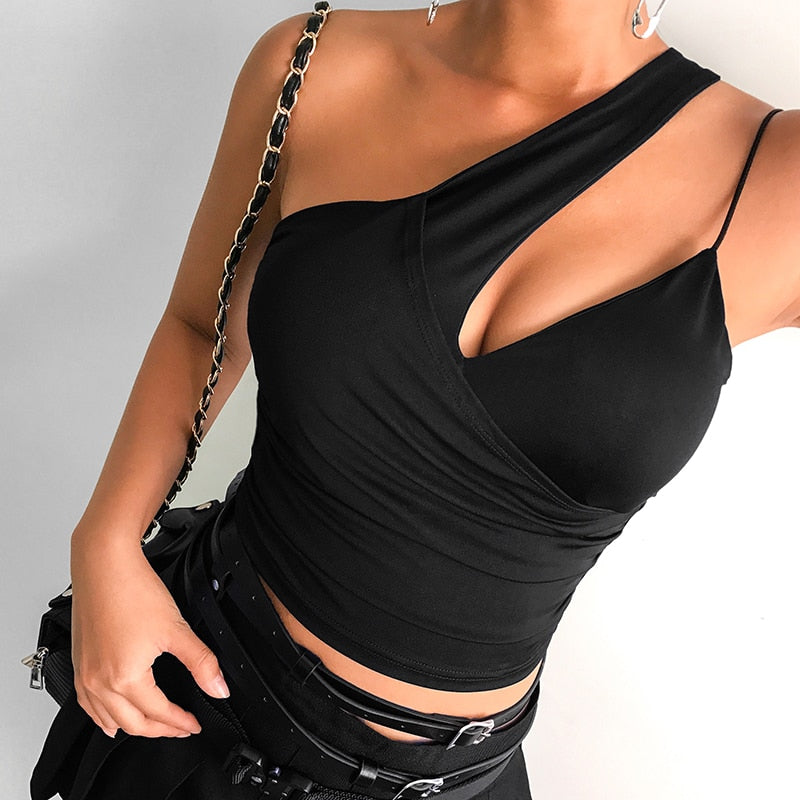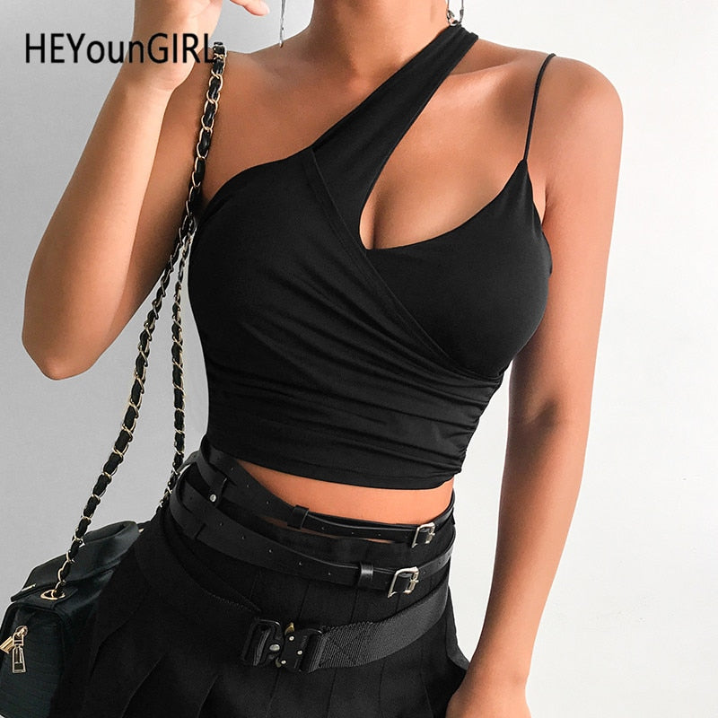 HEYounGIRL Irregular Halter Tank Top Women Harajuku Backless Cropped Top Ruched Black Cami Tops Tees Ladies Summer Party Club