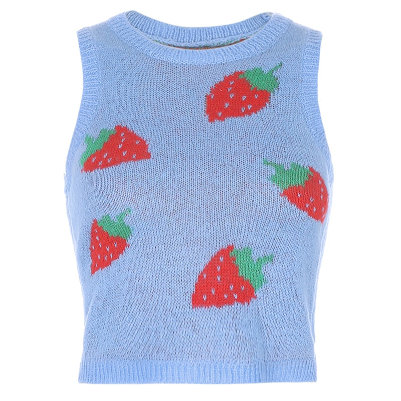 HEYounGIRL Pink Sweat Cute Sleeveless Sweater Vest Women Casual Autumn Strawberry Tank Knitted Crop Top Fashion Streetwear