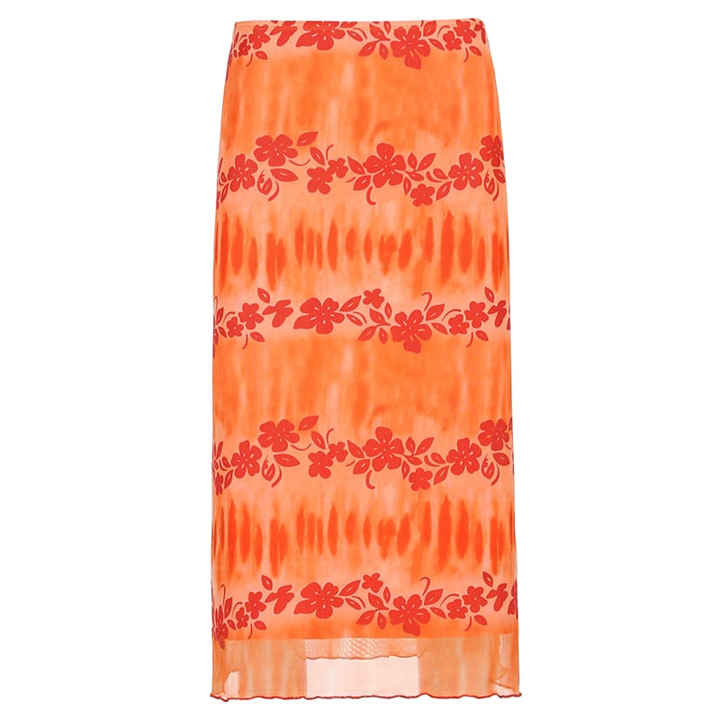 HEYounGIRL Summer Floral Print Midi Skirts Womens Casual High Waisted Skirt Ladies Sweat Cute Fashion Beach Streetwear 2021