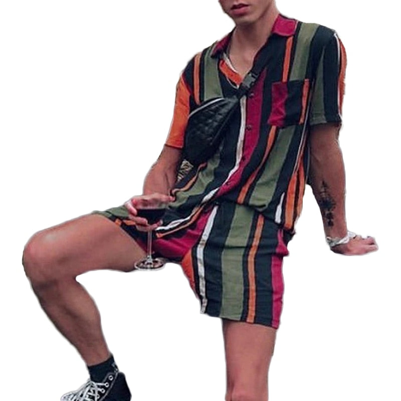 INCERUN Fashion Printed Men Sets 2022 Short Sleeve Lapel Shirt Casual Shorts Streetwear Summer Beach Men Hawaiian Suit 2 Pieces