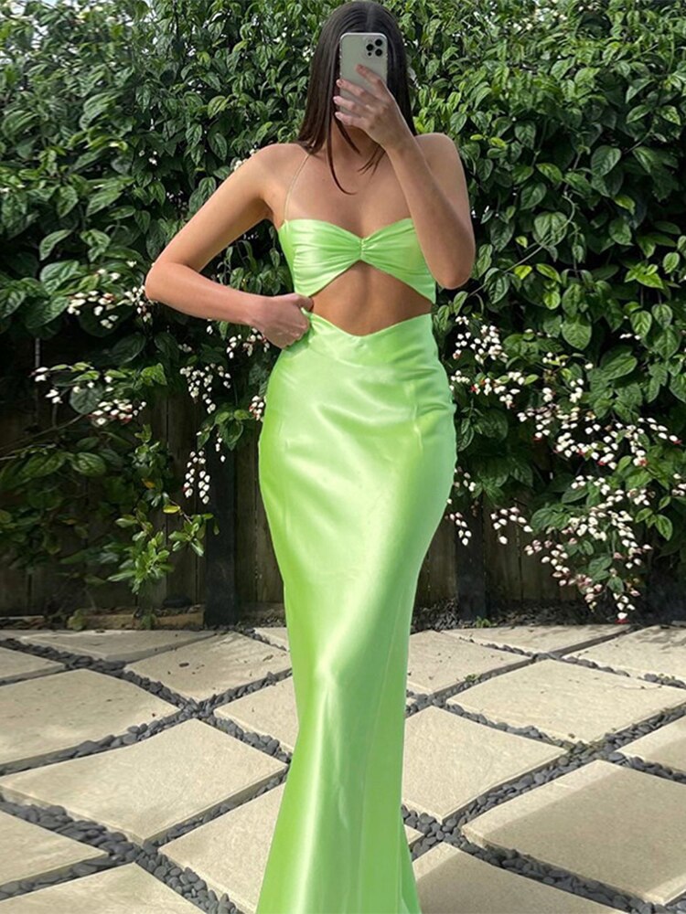 Jacqueline 2022 Beach Satin Long Skirt Sets Summer Women's suit Ruched Halter Crop Top 2 Piece Sexy Bodycon Dress Set Party robe