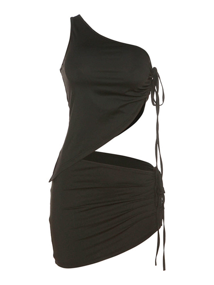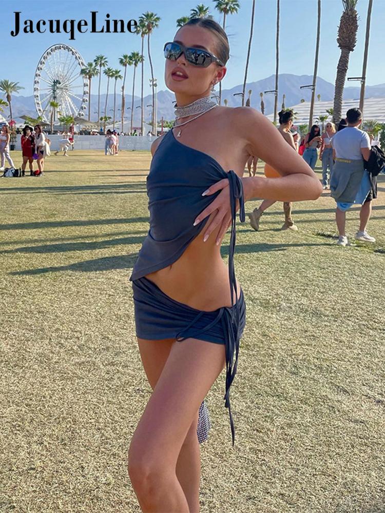 Jacqueline 2022 Drawstring Dress Summer Sets Womens Outfits Sexy One Shoulder Crop Top and Mini Skirts Sets Co-Ord Club Party