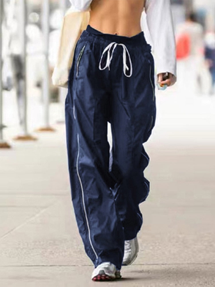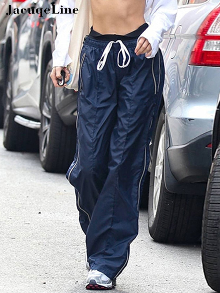 Jacqueline Summer 2022 Baggy Y2K Blue Fashion Casual Women Pants Low Waist Sweatpant Straight Trousers Street Retro Cargo Pant