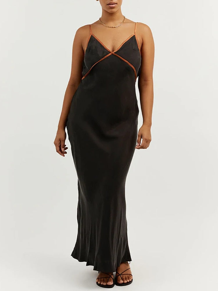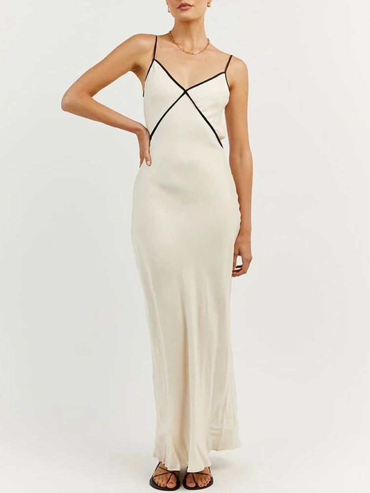 Jacqueline Summer 2022 Satin Midi Bodycon Dress Women Evening Deep V Sleeveless Sexy Elegant Party Dresses Casual Black White