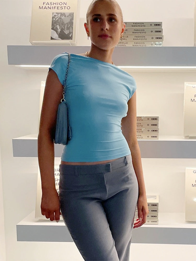 Jacuqeline 2022 Fashion Urban Sexy Backless Cut Out Crop Tops Women Summer Basic O Neck Vintage Street Short Sleeve T Shirts Y2K