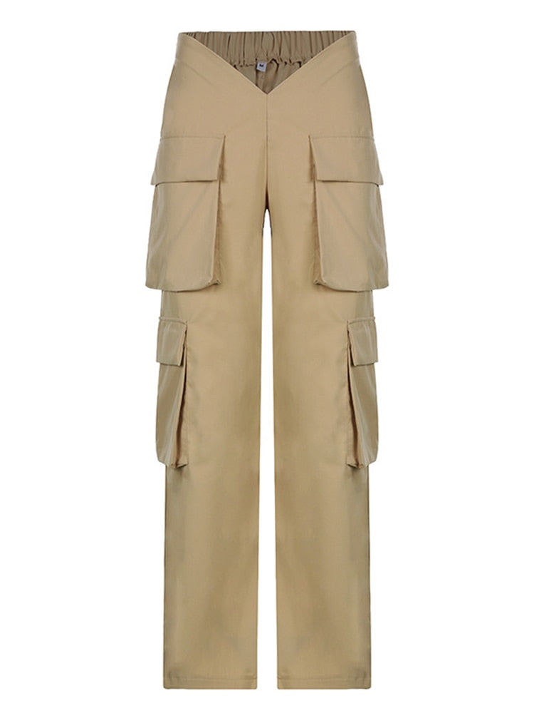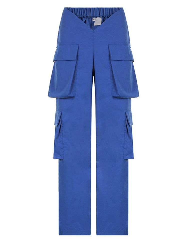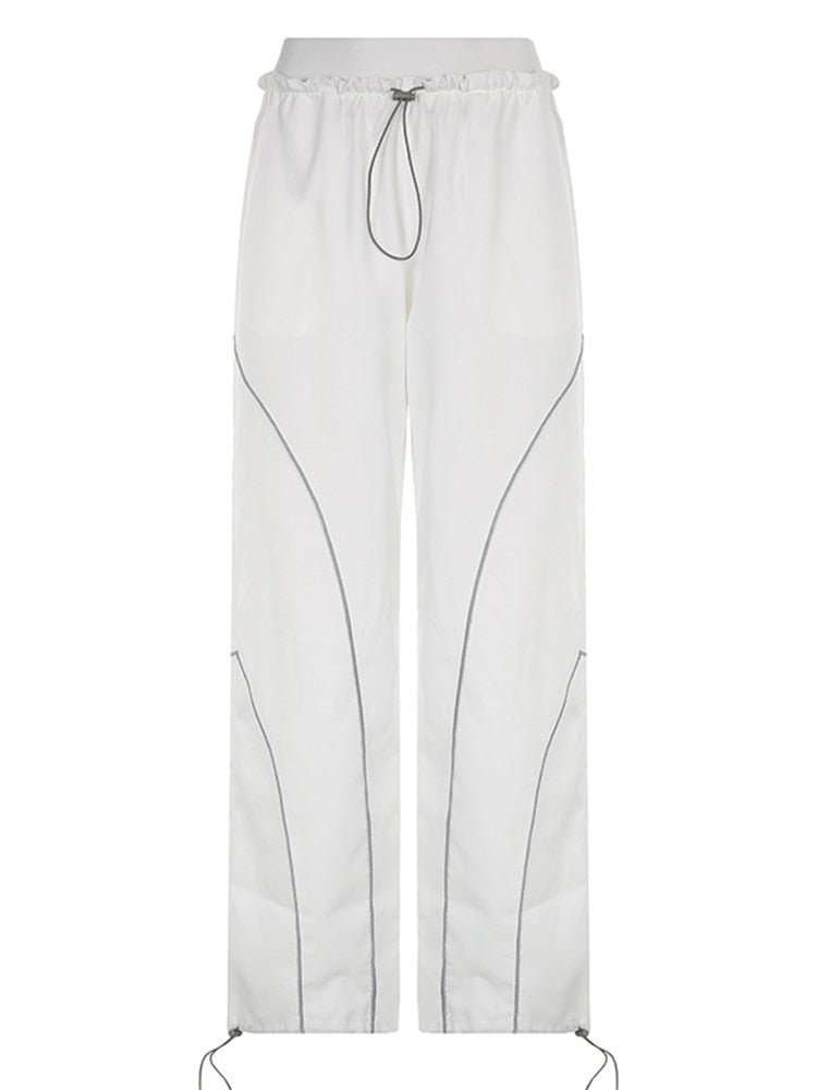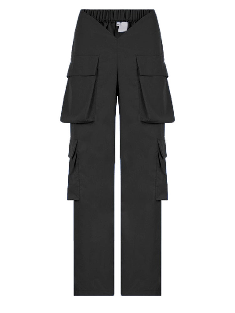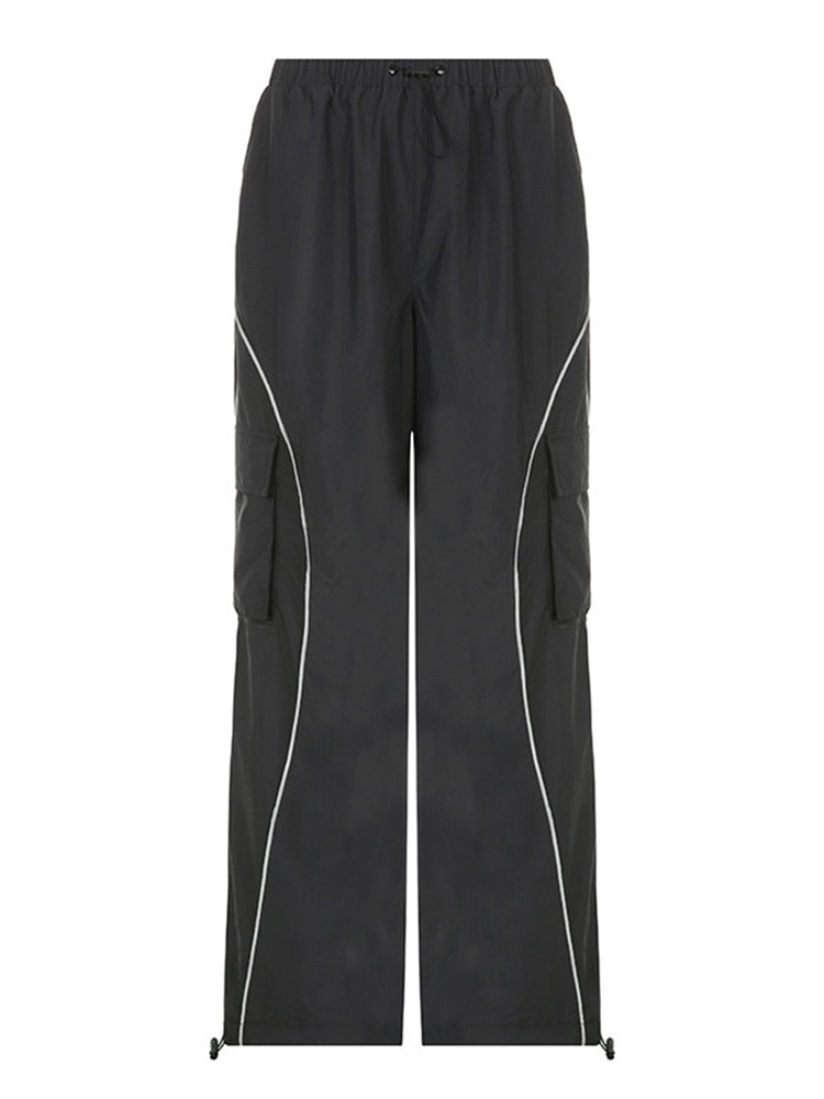 Jacuqeline 2022 Loose Wide Leg Baggy Pants Women Hippie Casual Streetwear Low Waist Cargo Trousers Contrast Stitching Sweatpants
