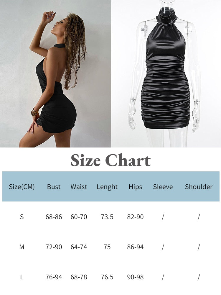 JacuqeLine 2022 Sexy Halter Neck Mini Bodycon Satin Women Dress Summer Black Backless Sleeveless Red Elegant Party Club Dresses
