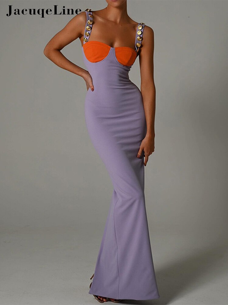 Jacuqeline 2022 Sleeveless Summer Dress Long Sexy Bodycon Clothes for Women Patchwork Backless Button Elegant Dresses Club Party