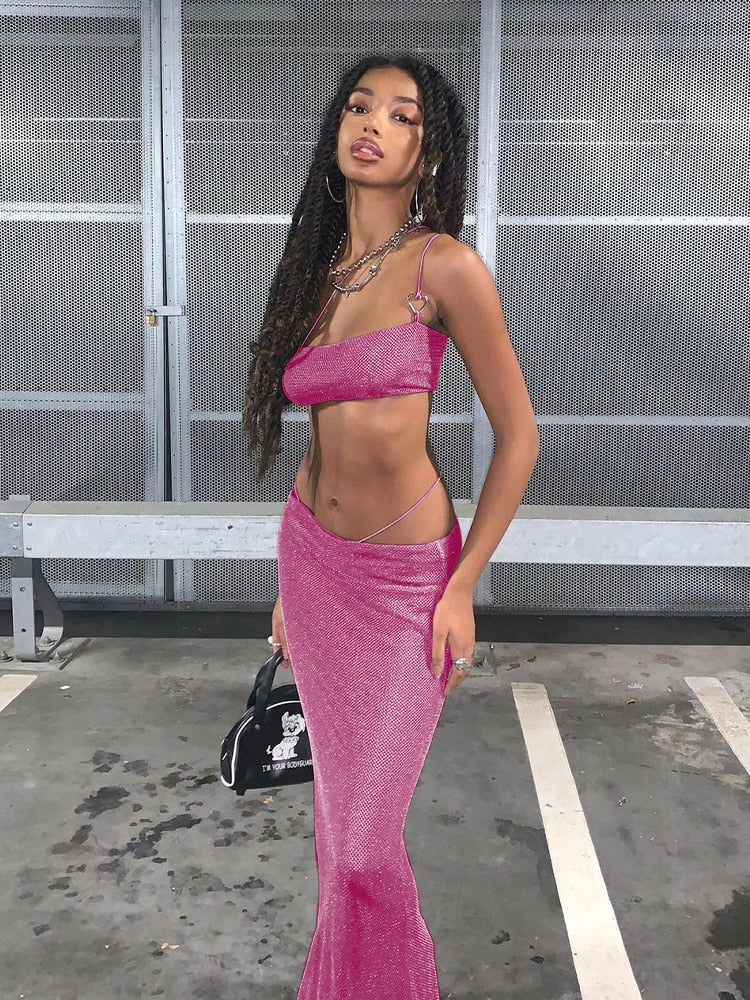 Jacuqeline 2022 Summer Sexy Mesh Beach Dress Sets Women Sleeveless Tube Top And Bodycon Midi Skirts Y2K 2 Piece Set Club Party