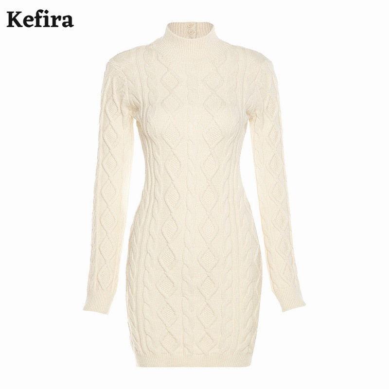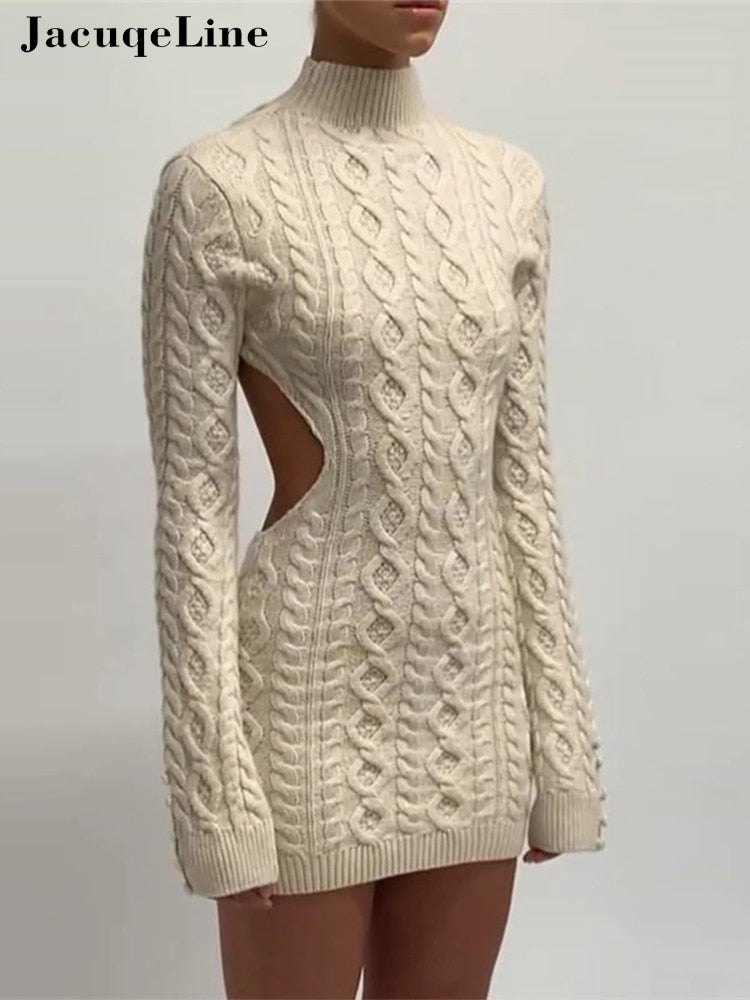 Jacuqeline Long Sleeve Sexy Backless Knitted Women Dress Mini Fashion Casual Warm Skinny Bodycon Sweater Dresses Autumn Winter