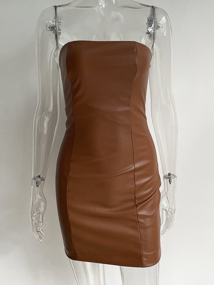 JacuqeLine Summer 2022 Sexy Club Strapless Bodycon Dress Women Mini PU Leather 90s Street Fashion Y2K Party Dresses Backless