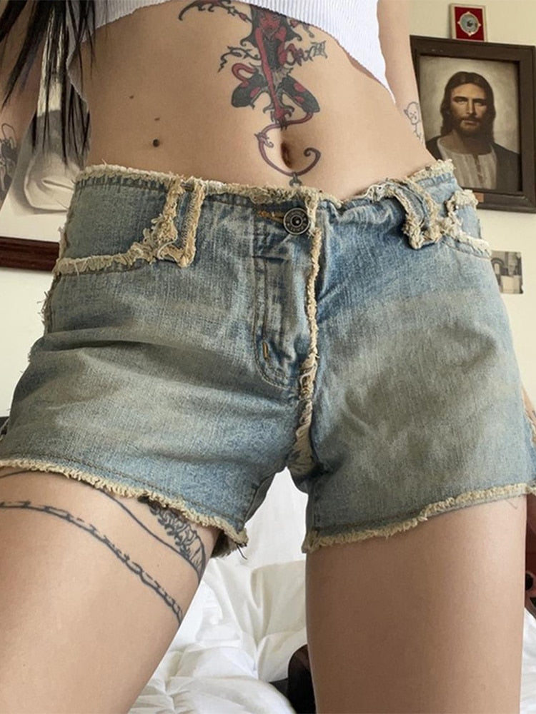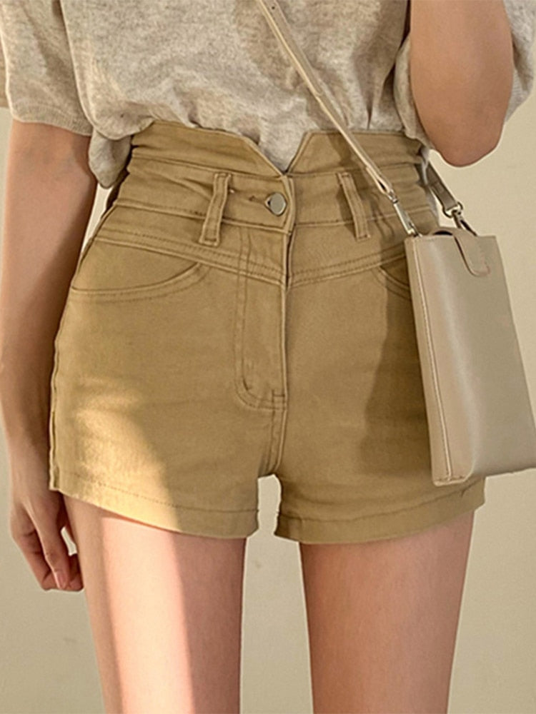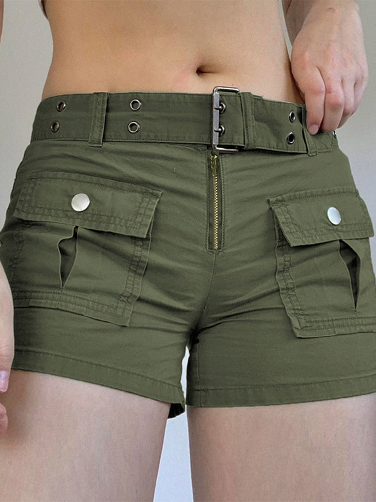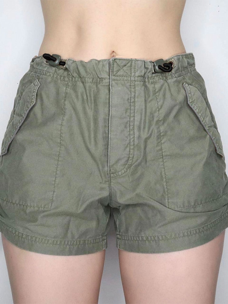 Jacuqeline Summer Low Waist Casual Harajuku Women's Shorts 2022 Asymmetri Pocket American Workwear Button Short Pants Street Y2K