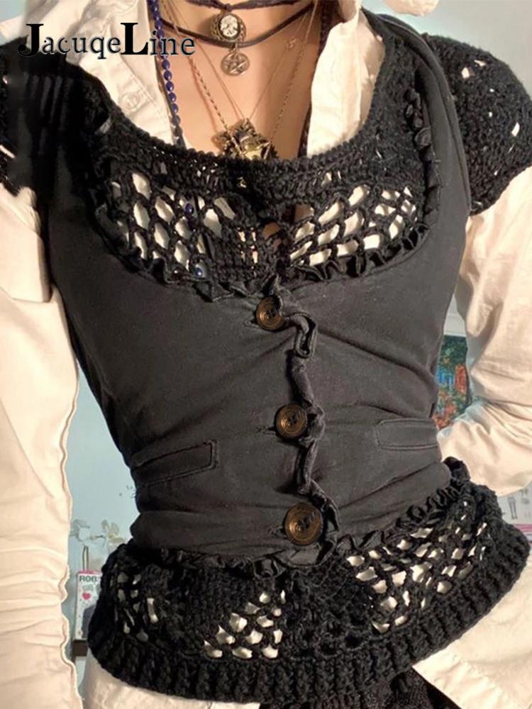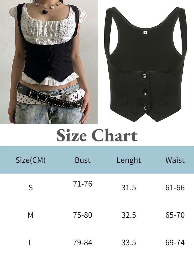 Jacuqeline Y2K Clothes Ruffle Tank Tops Women Button Racerback Fairy Grunge Vest Vintage Crop Tops Harajuku Gothic Preppy Corset