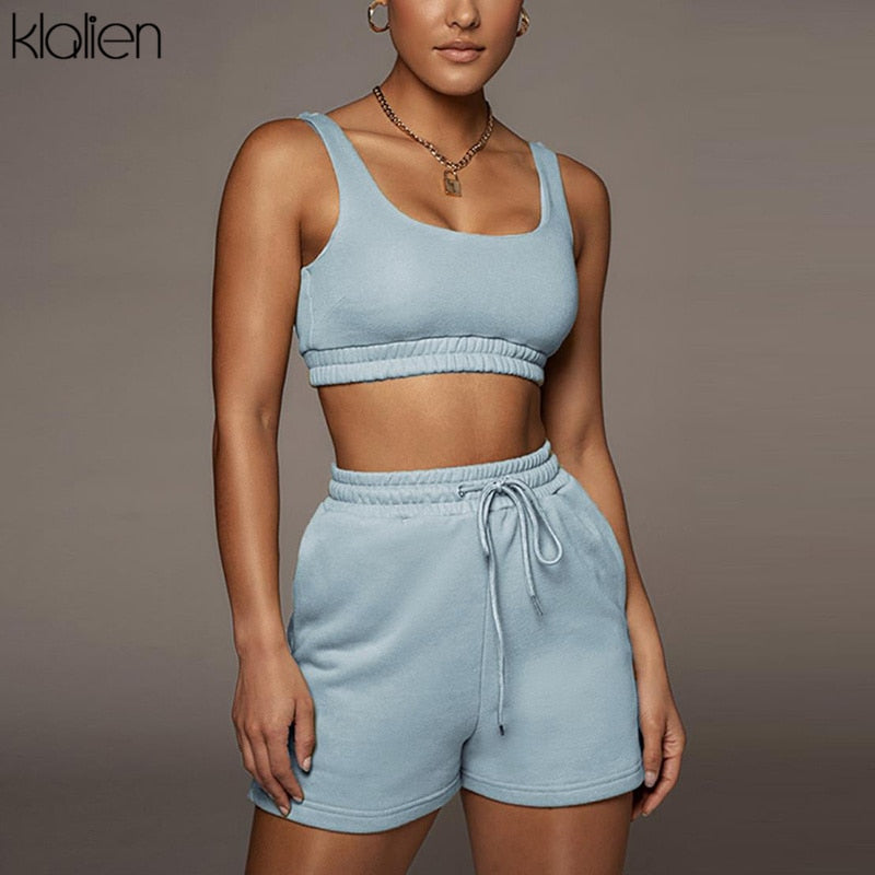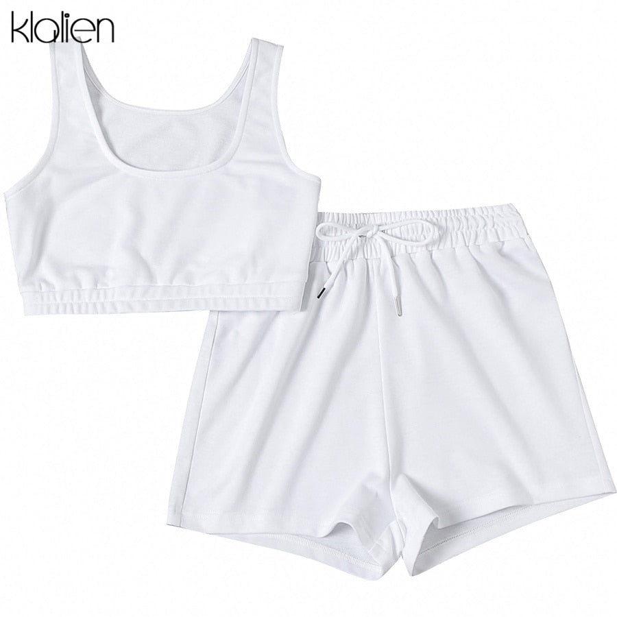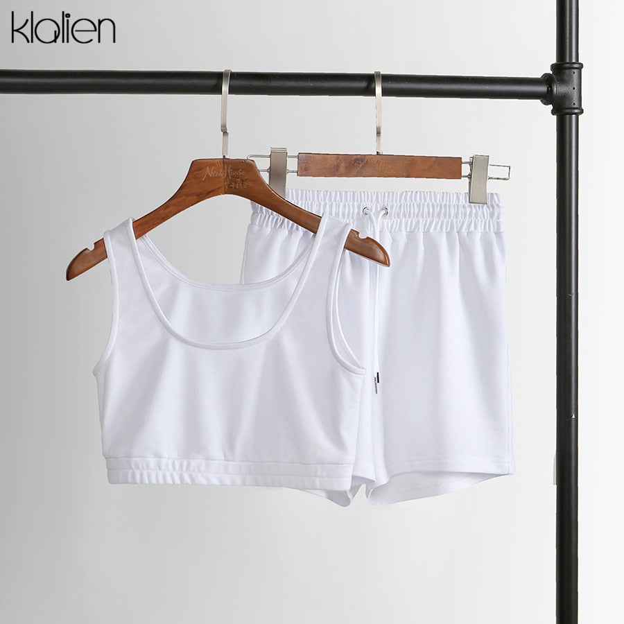 KLALIEN Fashion Casual Soft Cotton Stretch Slim Women Two Piece Set Summer Simple Solid Club Street Home Wear Top and Shorts Set