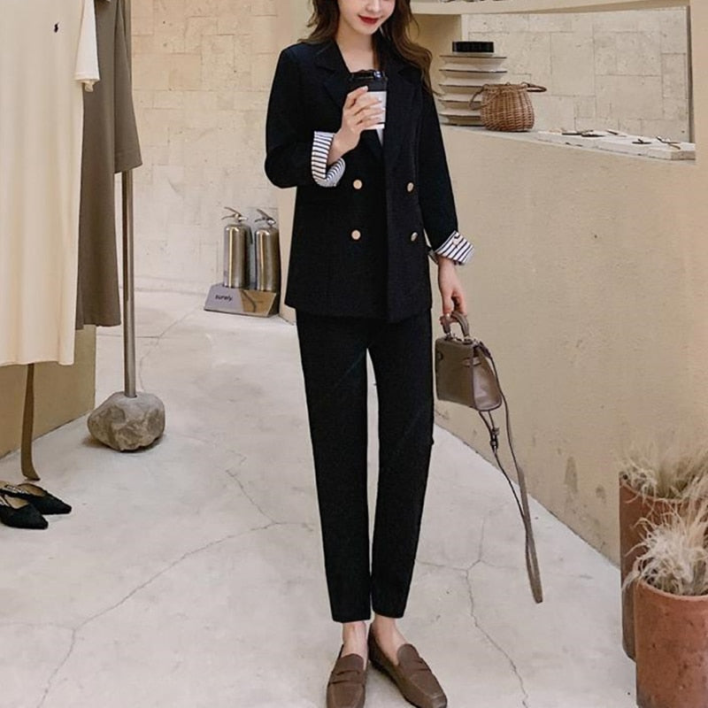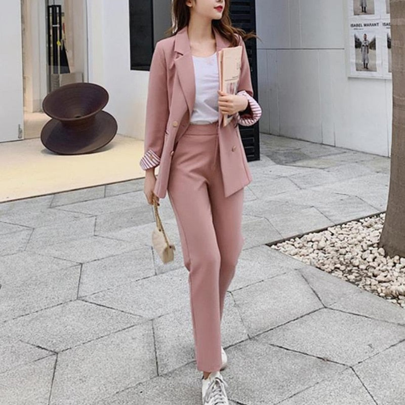New Fashion Spring Summer Women Office Lady Slim Blazer Pants Two-Piece Set Suits Female