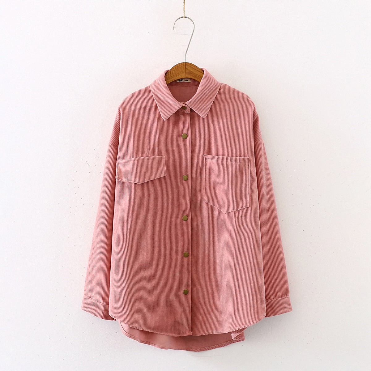 New Women Solid Corduroy Batwing Sleeve Vintage Blouse Turn-Down Collar Loose Top Button Up Pink Shirt Feminina Blusa T9D609T
