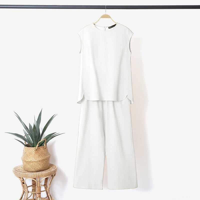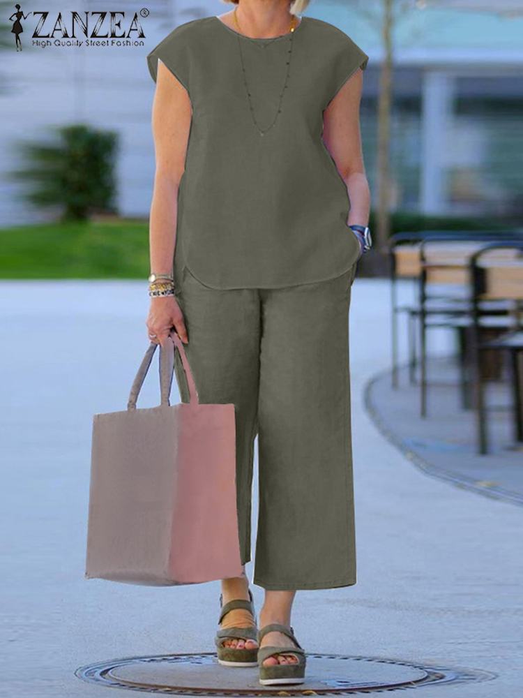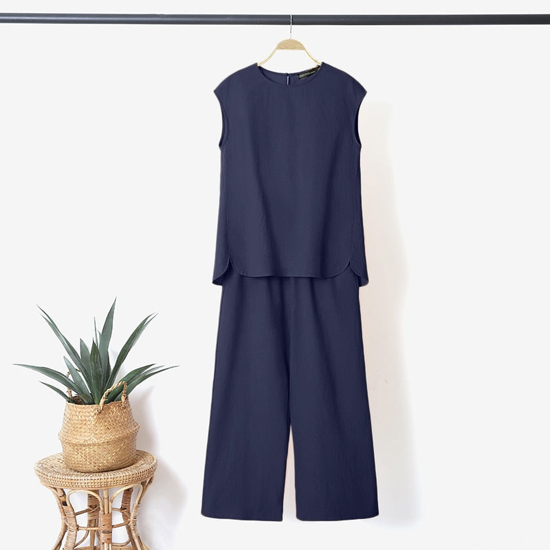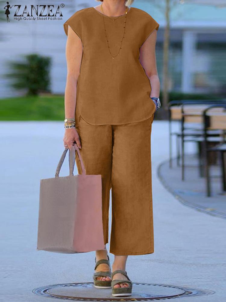 Oversized Holiday Matching Pants Sets ZANZEA 2022 Casual Sleeveless Blouses and Loow Pants Women Solid Sets Female kaftan 2PCS