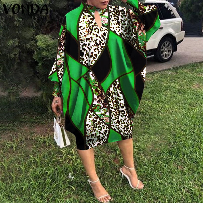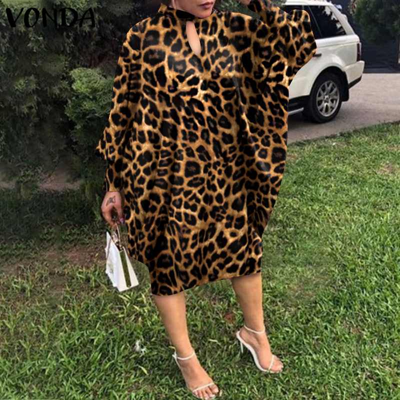 Party Dress Robe Women Long Sleeve Leopard Print Midi Dress 2022 VONDA  Autumn Casual Loose Holiday Long Shirt Vestido Oversized