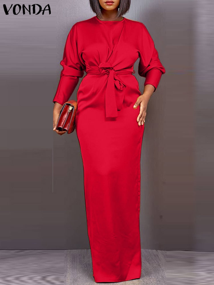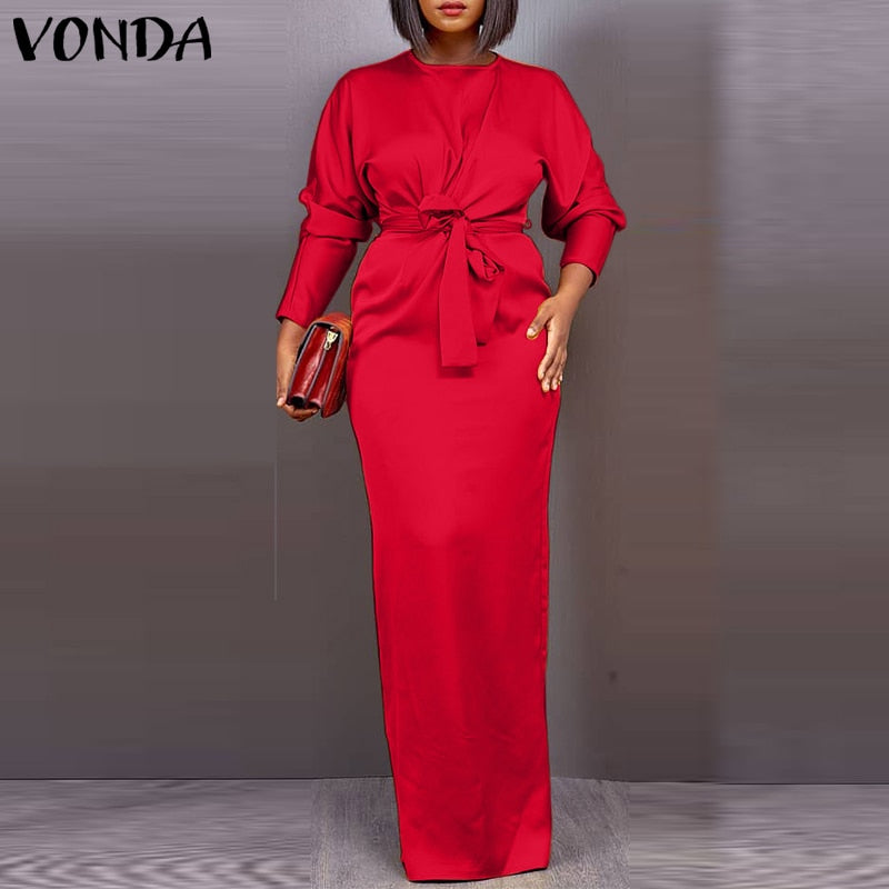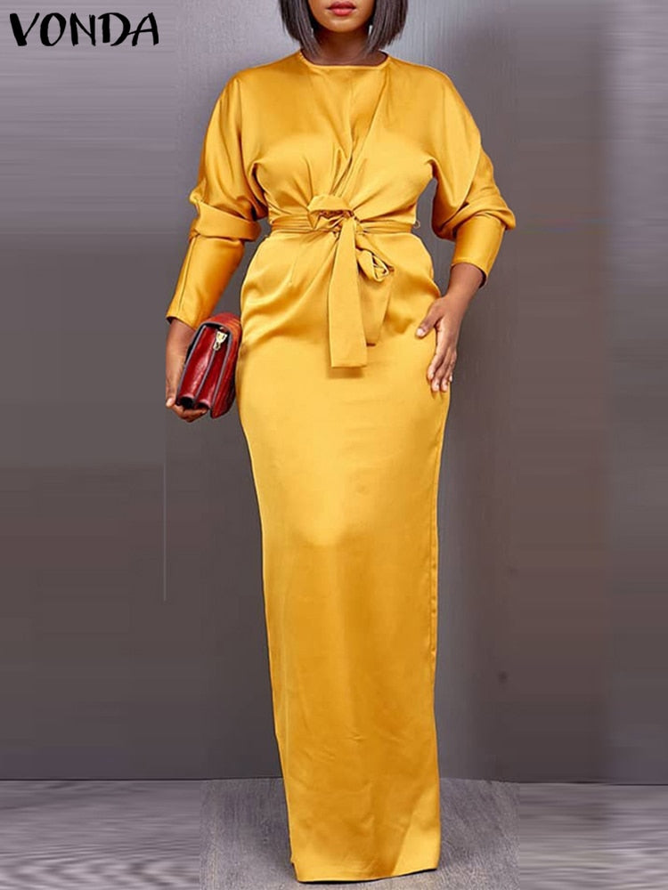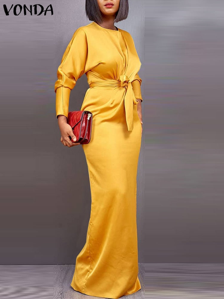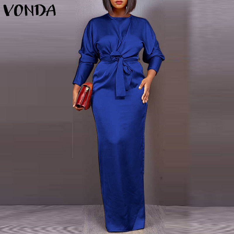 Model Number: VONDA Brand Long Sleeve Satin Slik Dress