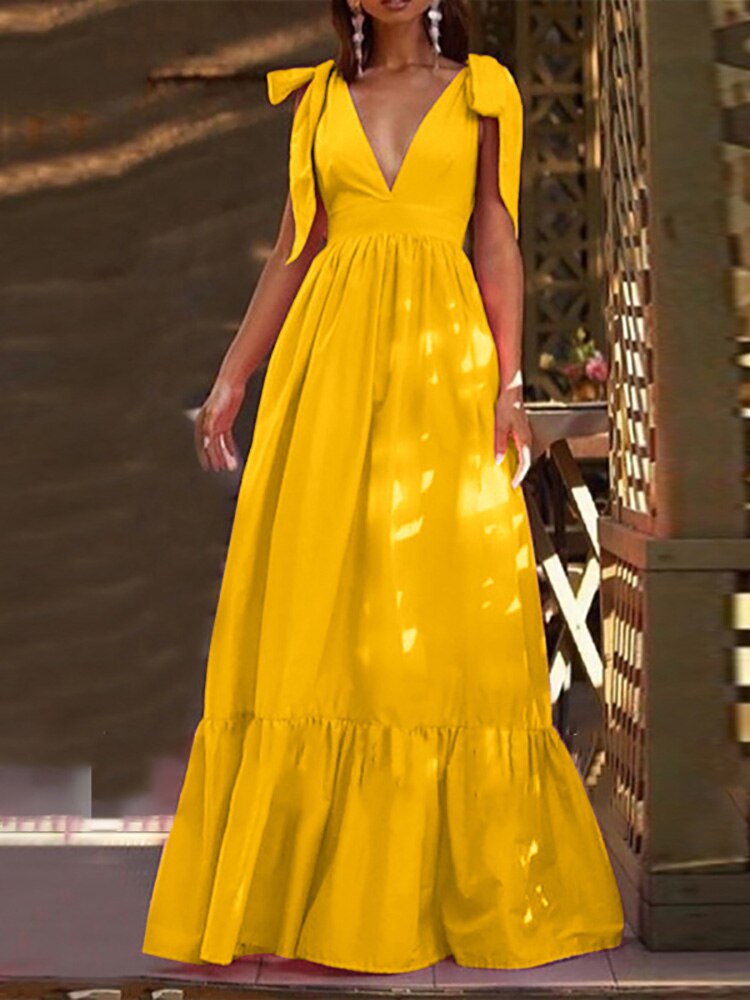 Sexy Summer Women V-Neck Sling Backless Dress Elegant Hollow Out BowKnot Long Party Dress Fashion Femme Dot Maxi Dress Vestido
